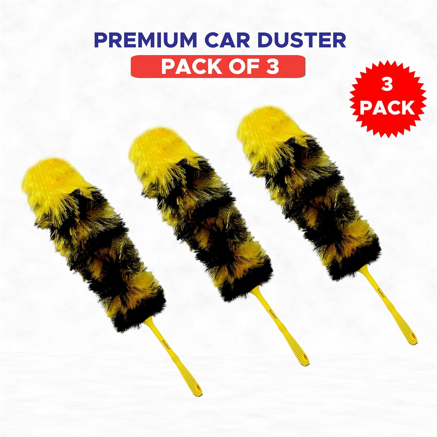VALUE PACK: Includes 3 yellow and black dusters with comfortable plastic handles (25 cm long) for ergonomic grip, perfect for keeping one in your car, home, and office.
