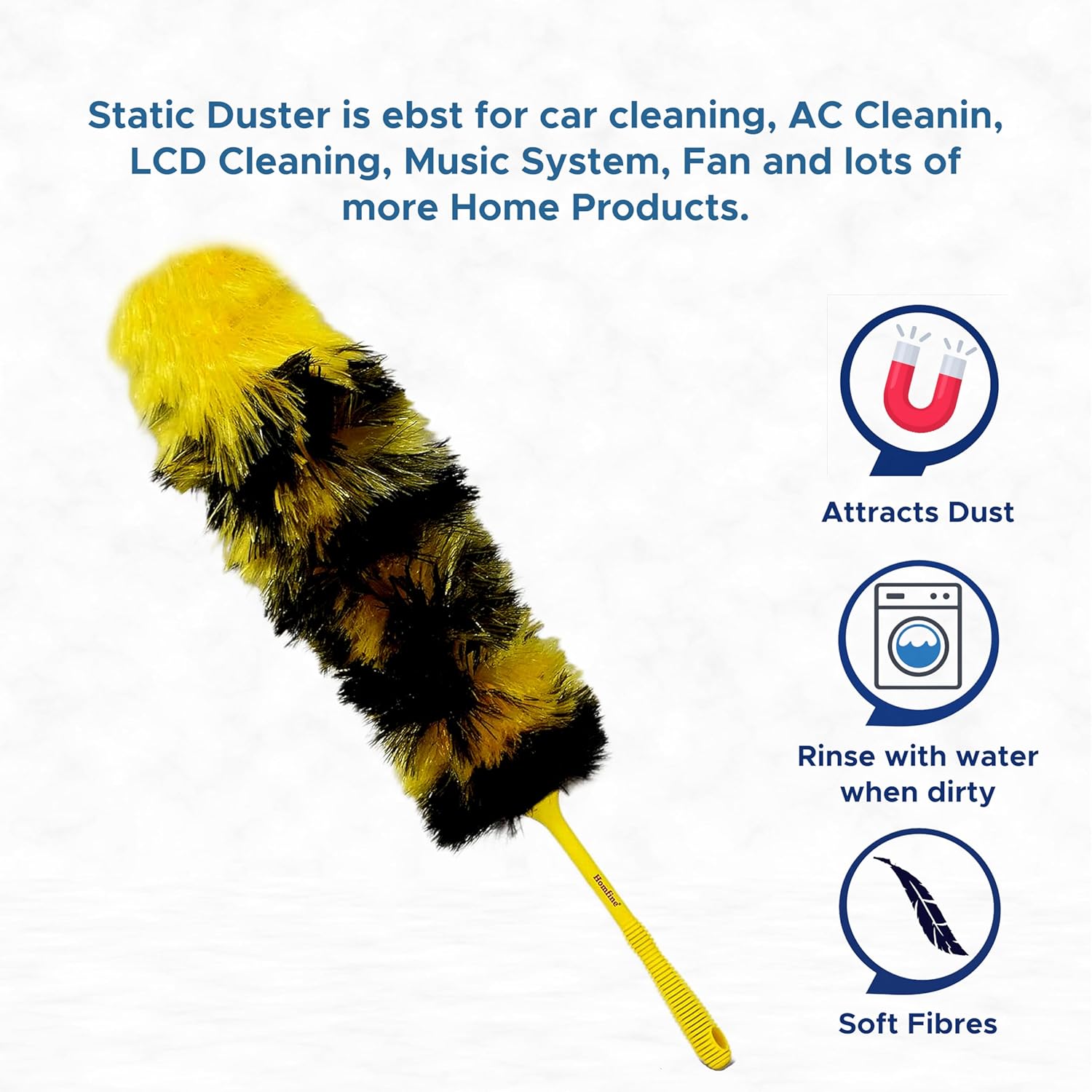STATIC DUST ATTRACTION: Soft microfiber bristles with static properties effectively attract and trap dust particles from car interiors, exteriors, AC vents, LCD screens, music systems, and various household surfaces.