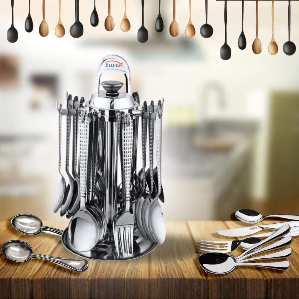 Revolving Stand: The set includes a revolving stand for convenient storage and easy access to the cutlery