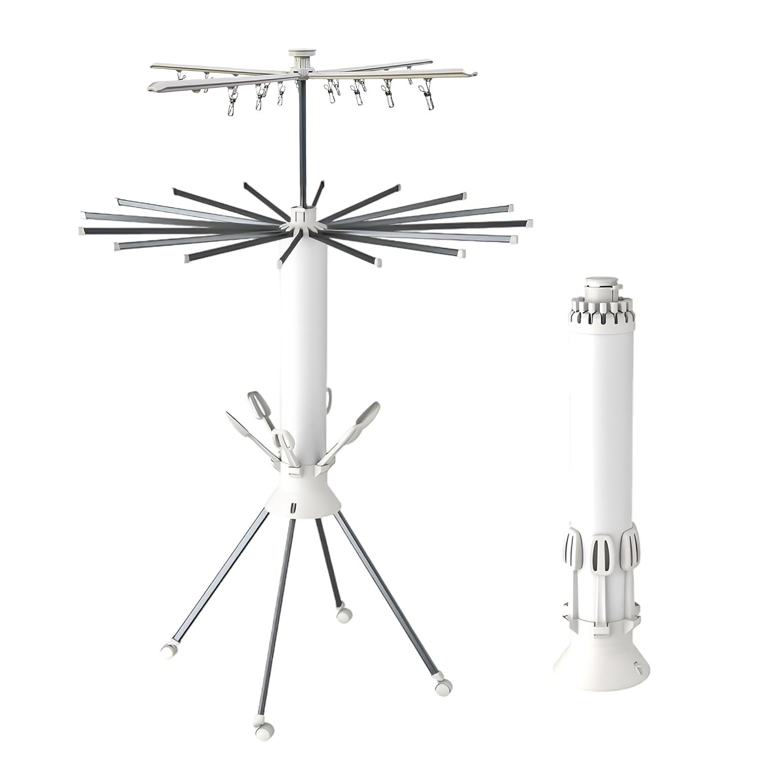 amazon basics Metal Indoor Clothes Drying Rack Tower With Foldable Wings And Movable Wheels (Silver & Grey)