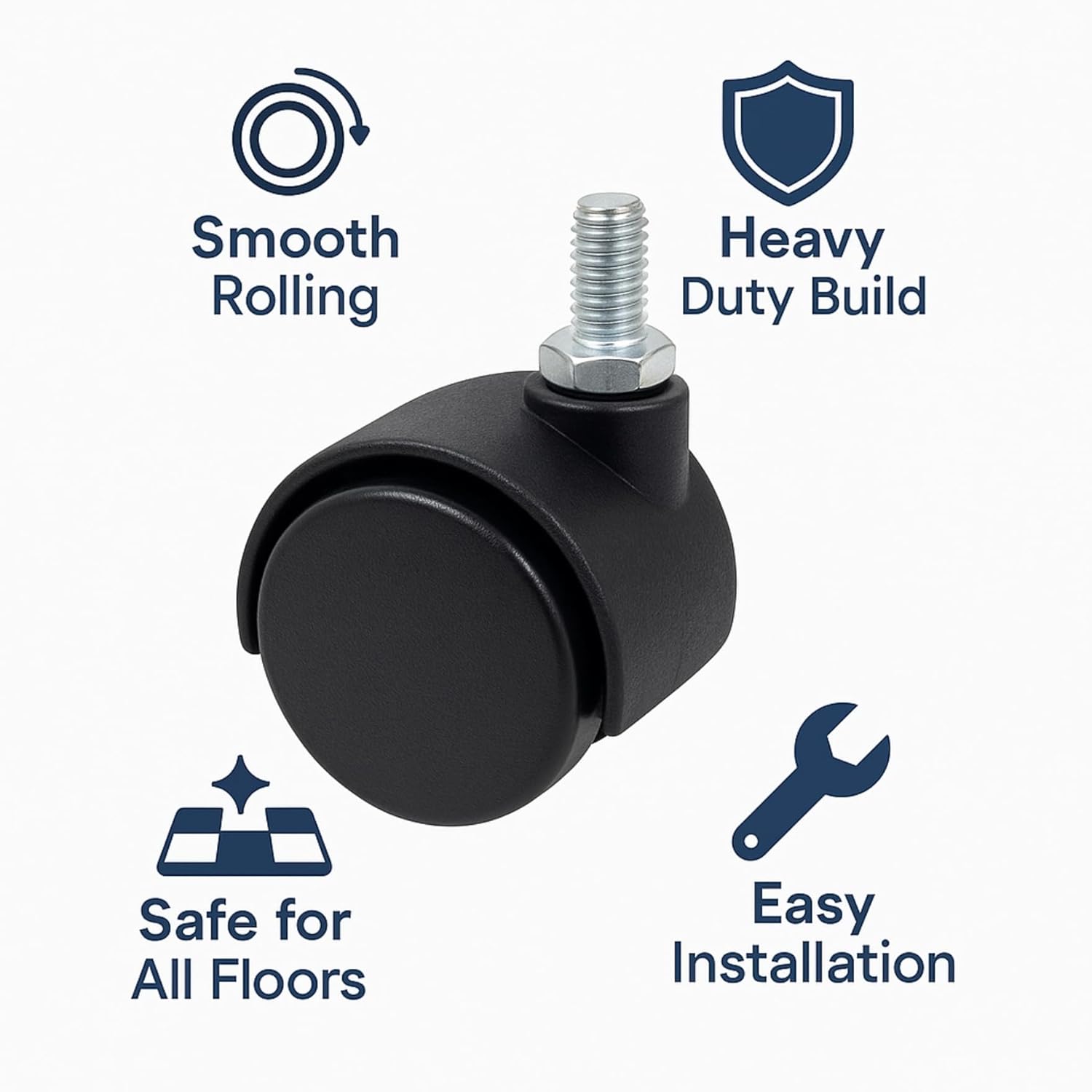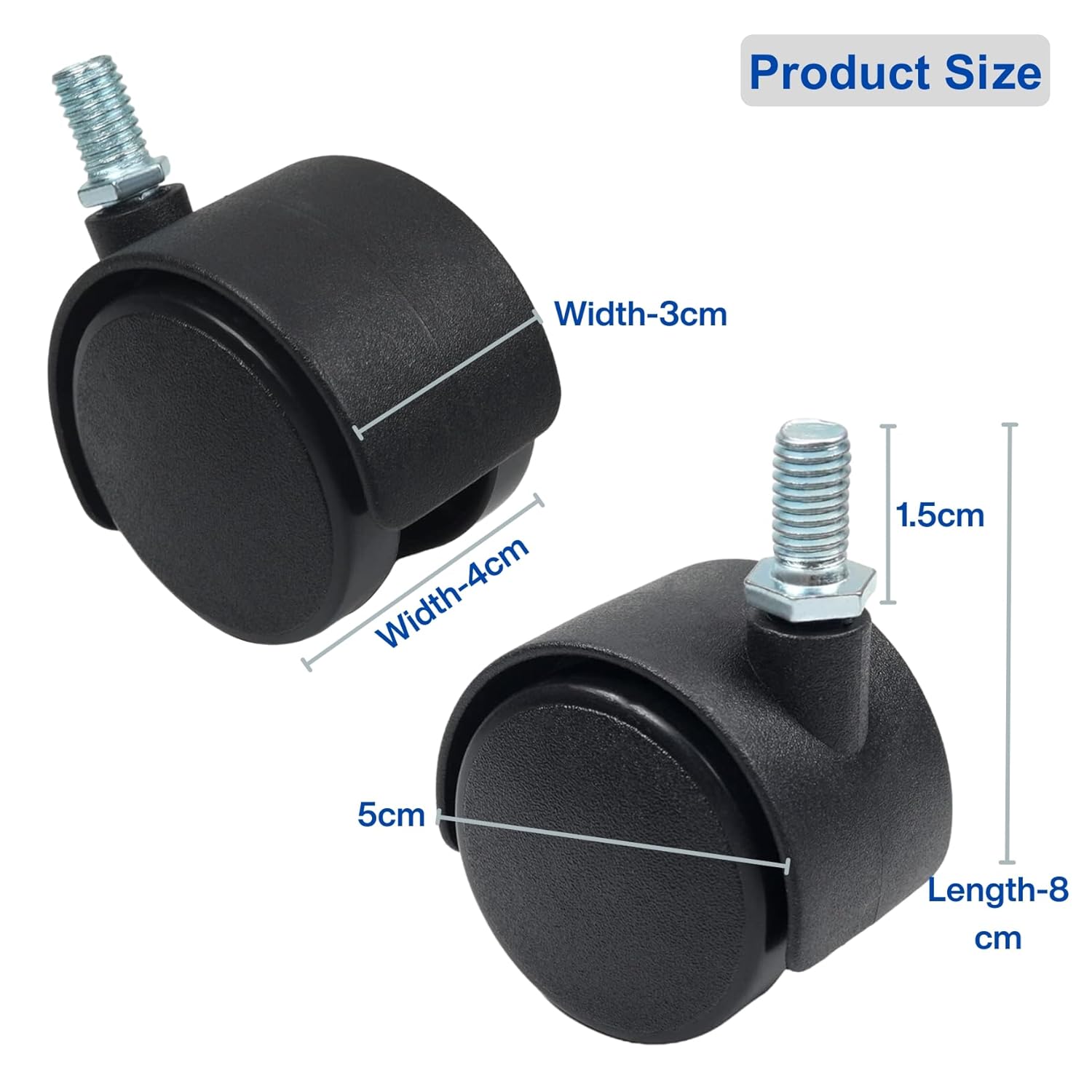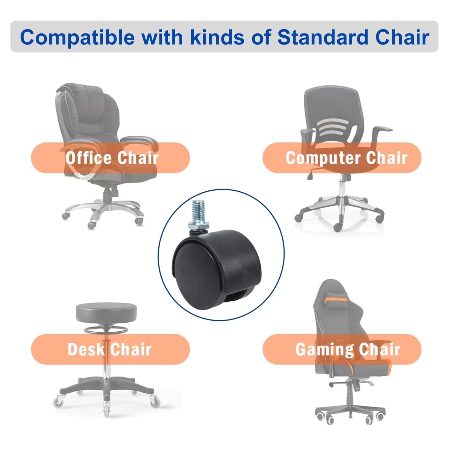 Size and Compatibility: Standard size stem of 3/8 inch (10mm) diameter x 7/8 inch (1.5 mm) length and wheel diameter of 2 inches (50mm), compatible with most rolling chairs.