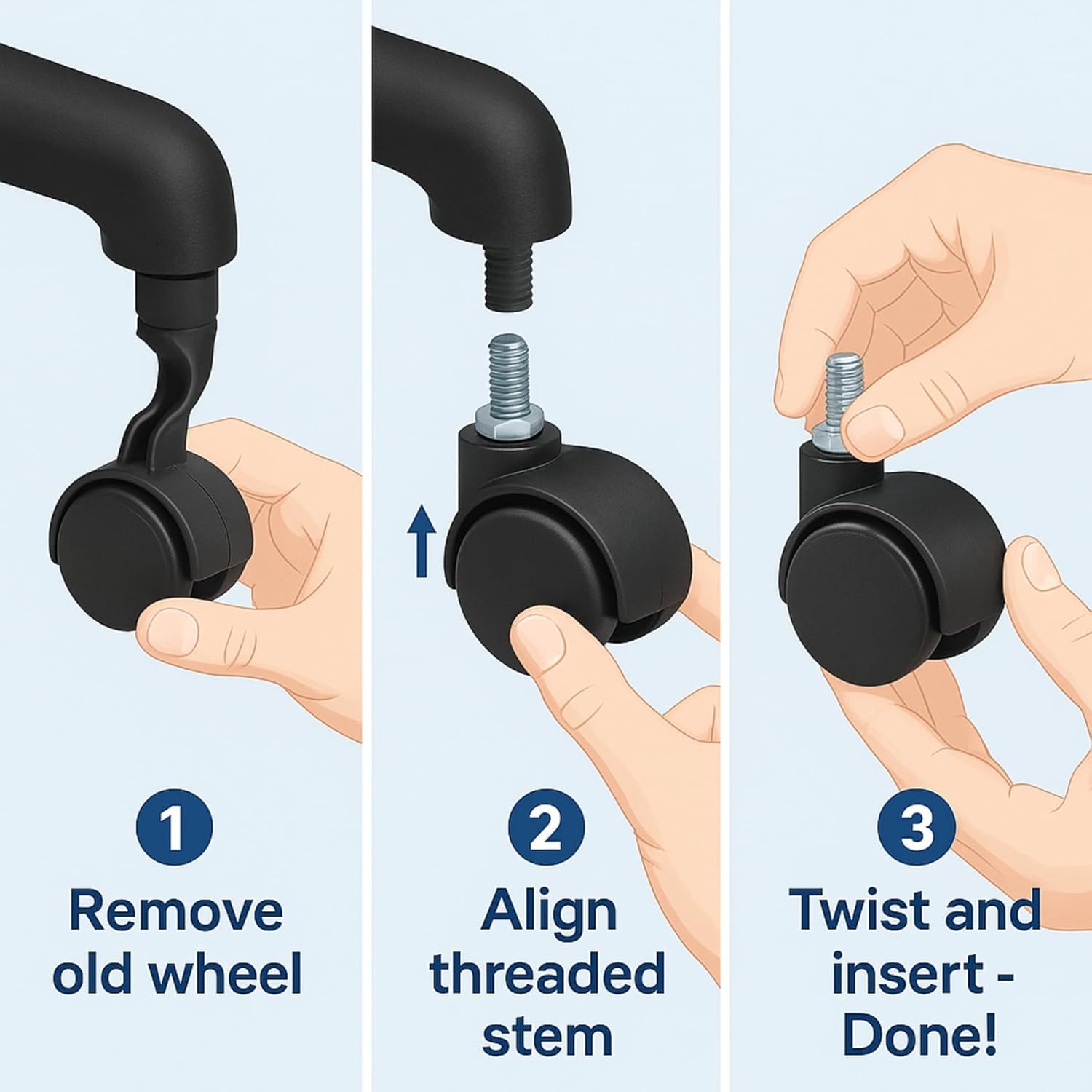- Easy to install:These wheels are easy to replace and install on your office chair. They fit most standard chair stems and come with a user manual for guidance.