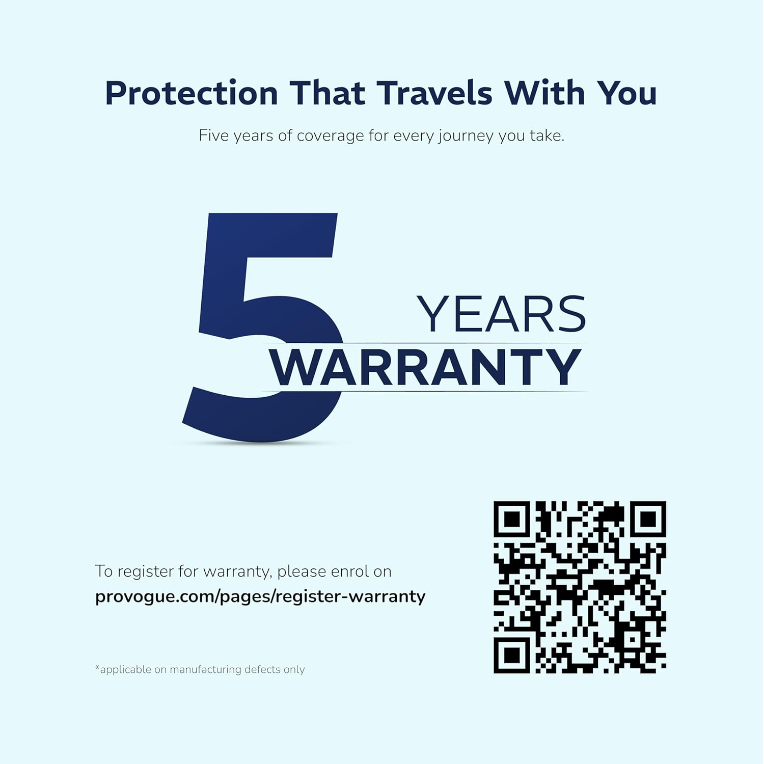 5-Year Warranty – Travel with confidence knowing this Provogue luggage comes with a 5-year warranty, ensuring long-lasting quality and reliability for all your adventures.