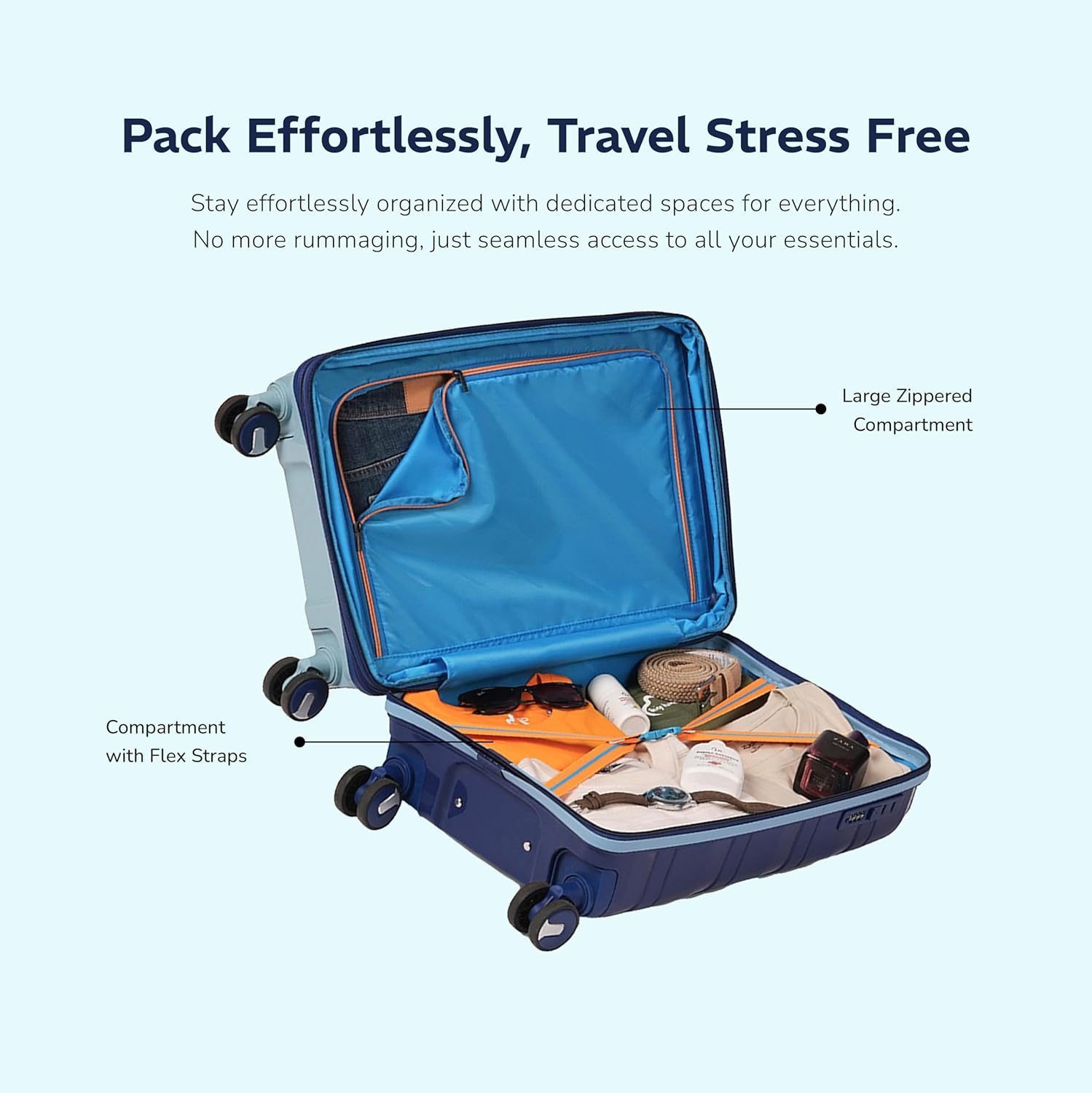 Expandable Storage – Need extra luggage space? Our expandable luggage provides additional room for your essentials without compromising on convenience. Get up to 20% more capacity by unzipping the expander as needed, making our trolley bags perfect for any journey.