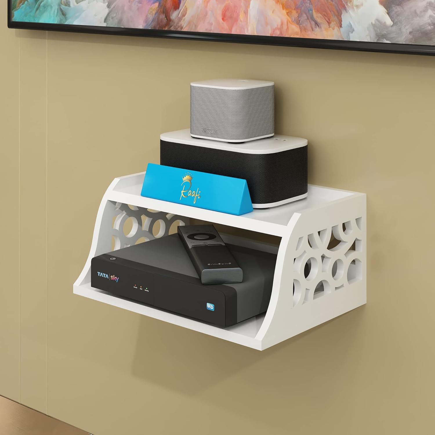 Engineered Wood Setup Box Stand Set Top Box Stand Wall Mount for Home Wall Shelf for Holding Speakers WiFi Router Game Console Remote Streaming Device