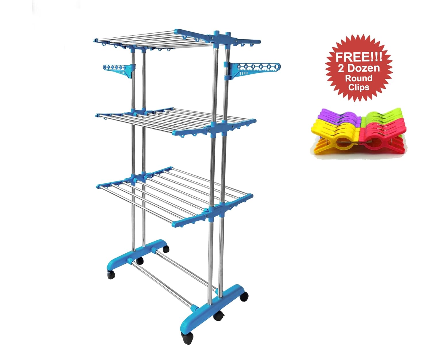 ✅ DRYING SPACE: Huge 54 feet Drying Space: The clothes drying stand is a 3-layered heavy duty double pole rack with 6 folding wings and 24 sturdy rods. The cloth stand has foldable wings that help in saving space which is perfect for small spaces. Besides, the cloth dryer has enough space between the rods for a quick air dry.
