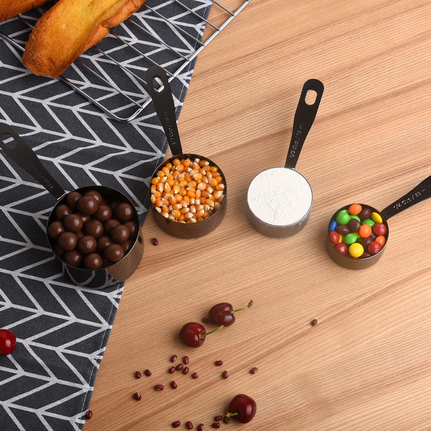 High Quality: Made of premium food grade stainless steel, they are rust-proof, lead-free, BPA-free, durable and eco-friendly and are safe to use for both dry and wet ingredients. The steel cups are dishwasher-safe.