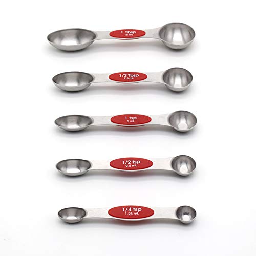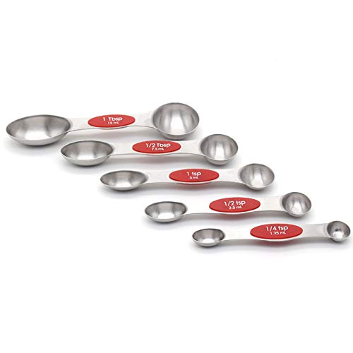 Set of stainless steel magnetic spoons: 5 individual different sized stainless steel measuring spoons (1/4 tsp, 1/2 tsp, 1 tsp, and 1/2 tbsp,1 tbsp)