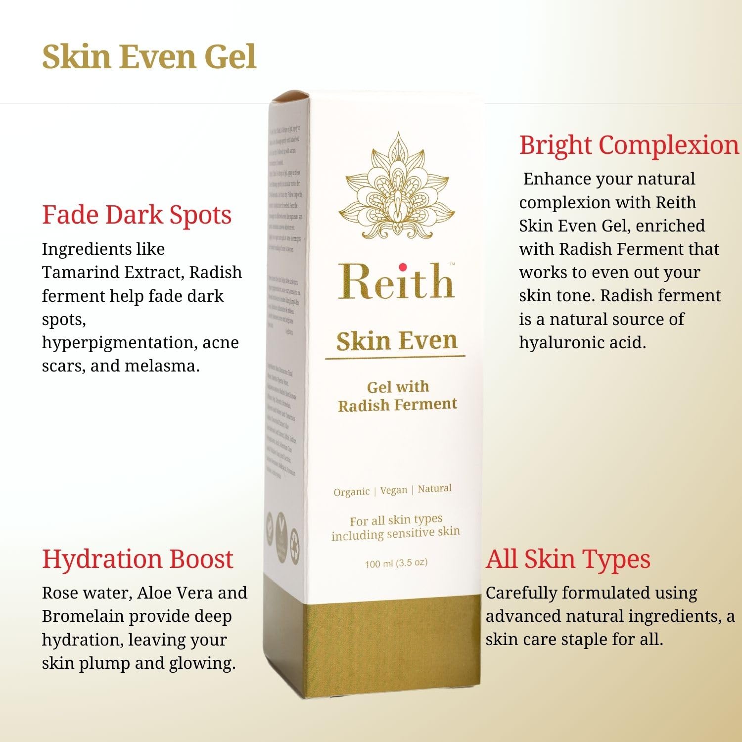 Be the first to review “Reith Skin Even Gel | Reduces Pigmentation & Dark Spots | Fades Uneven Skin Tone | Radish Ferment & Vitamin C | Face Brightening Gel | 100ml” Cancel reply