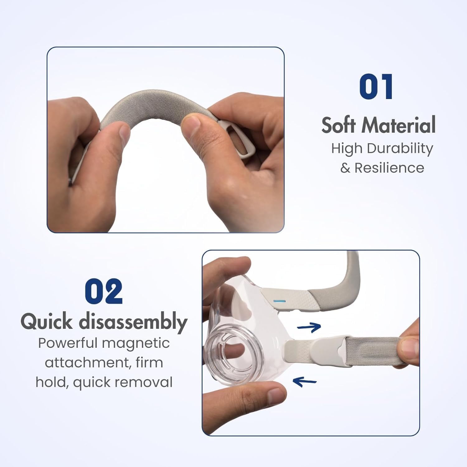 Quick-Disconnect Clips: Simplifies the process of attaching or removing the mask, making daily use more convenient.