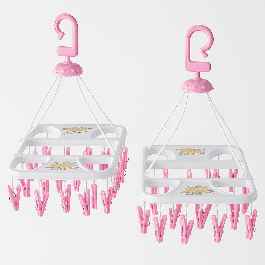 This stylish and elegant folding hanging stand with 28 clips is made of premium quality durable plastic material, ensures longevity. This new trendy hanging stand is perfect for modular home. It is best for baby clothes and small clothes.