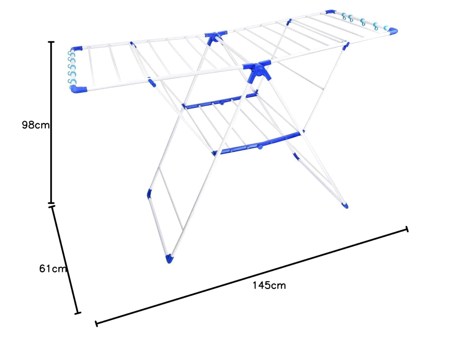 This clothes stand for drying having big diameter alloy steel tube and pp plastic which give sturdiness perfect to organize your towels skirts shirts blanket childrens clothing and contributes long service time