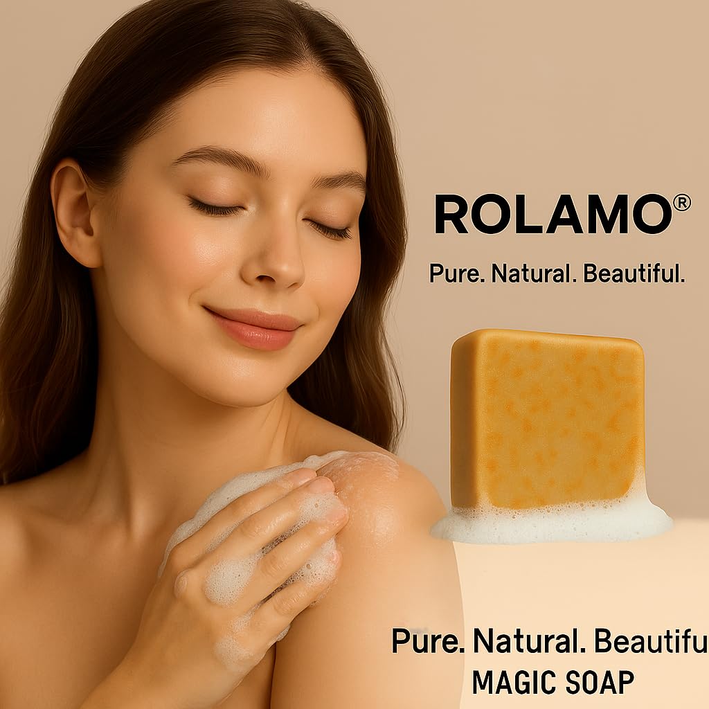 Discover ROLAMO Magic Soap, a luxurious bathing experience that helps address body tan concerns. This pack of three generously-sized soaps combines the time-honoured ingredients of sandalwood and saffron, known traditionally for their skin-enhancing properties. The rich, amber-coloured bars are formulated to work effectively on all skin types, making them versatile for various needs. Each soap bar features a distinctive mottled texture and comes beautifully packaged in a professional box set. The carefully chosen blend of sandalwood and saffron creates a sophisticated fragrance while helping to maintain skin’s natural appearance. Perfect for daily use, these soaps offer a premium bathing experience while working to help reduce the appearance of body tan. The convenient 3-pack ensures you’ll have plenty of this premium soap on hand for consistent use.
