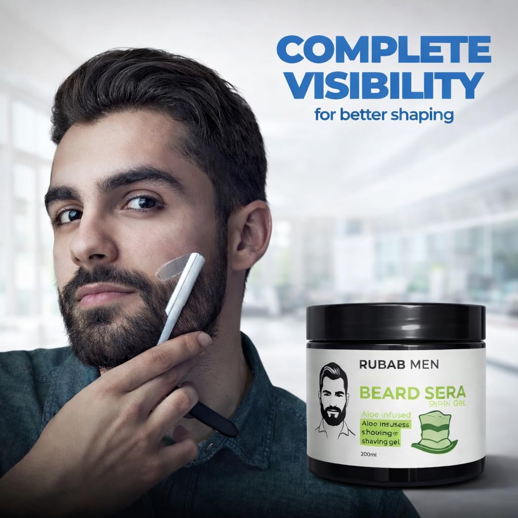✅ 𝐏𝐑𝐄𝐂𝐈𝐒𝐈𝐎𝐍 𝐁𝐄𝐀𝐑𝐃 𝐒𝐇𝐀𝐏𝐈𝐍𝐆 & 𝐂𝐋𝐄𝐀𝐑 𝐕𝐈𝐒𝐈𝐁𝐈𝐋𝐈𝐓𝐘: The transparent gel formula allows you to clearly see your beard line while shaving, helping you achieve sharp edges and perfectly defined contours. Ideal for beard styling, outlining, and detailed grooming without over-shaving or mistakes.