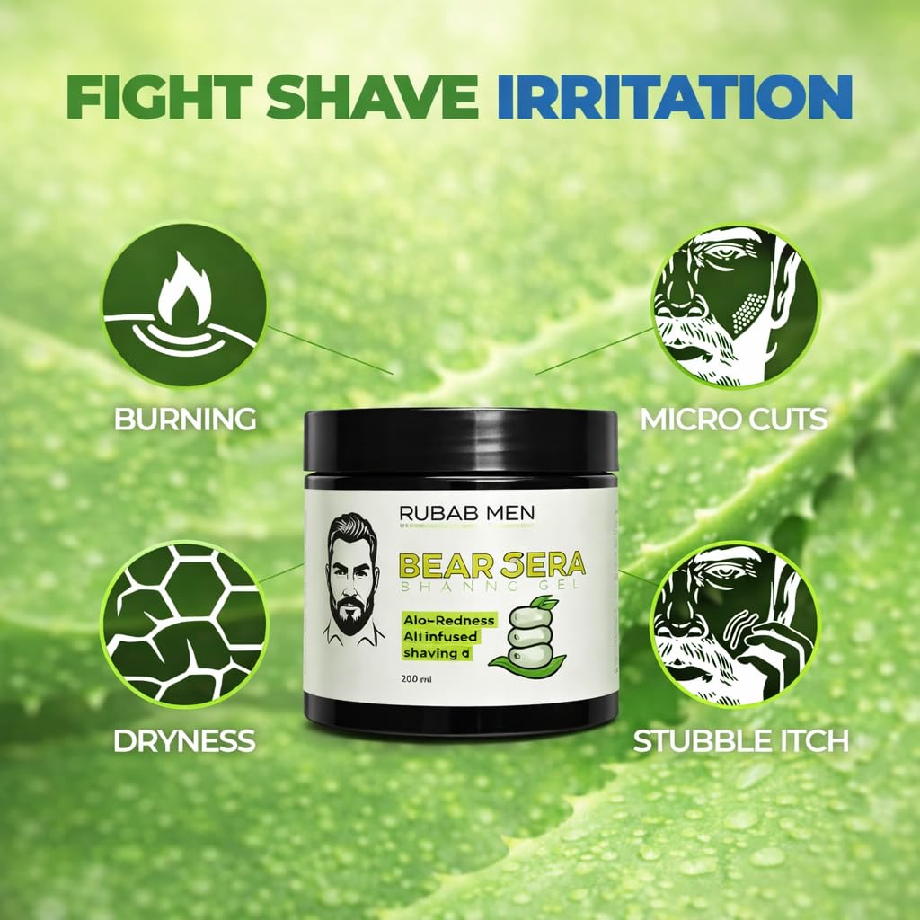 ✅ 𝐀𝐋𝐎𝐄 𝐕𝐄𝐑𝐀 𝐈𝐍𝐅𝐔𝐒𝐄𝐃 𝐂𝐀𝐋𝐌𝐈𝐍𝐆 𝐅𝐎𝐑𝐌𝐔𝐋𝐀: Enriched with Aloe Vera, this gel soothes irritated skin during and after shaving. It helps reduce redness, razor burns, and post-shave discomfort, making every shave smoother and gentler.