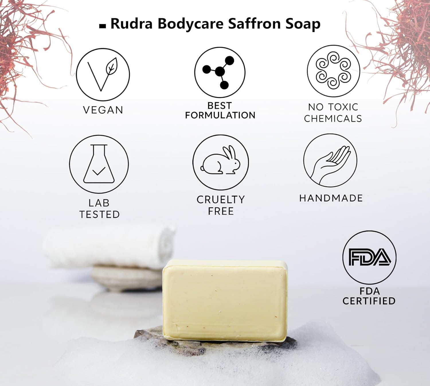 Chemical-Free & Gentle – Free from harsh chemicals and parabens. Rudra Saffron Soap is gentle on the skin and kind to nature. Its clean, selfcare based formula makes it safe for daily use even on sensitive skin.