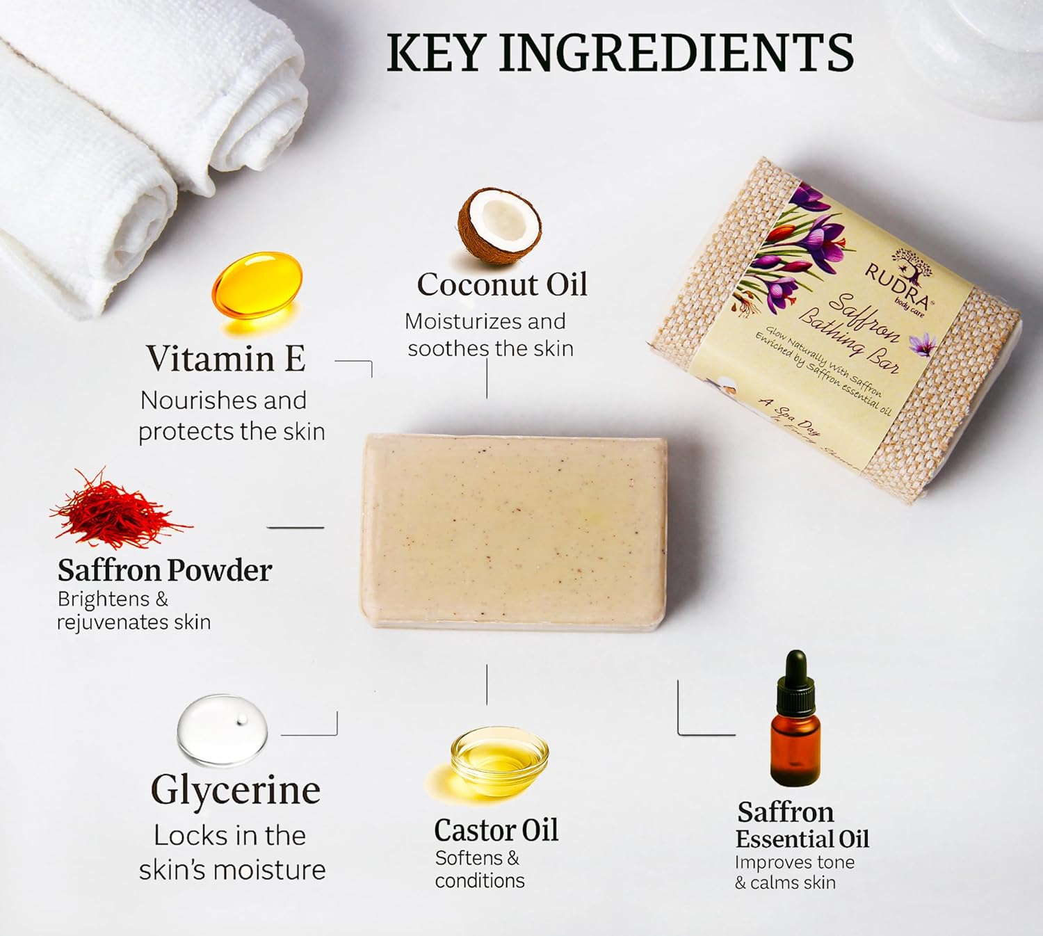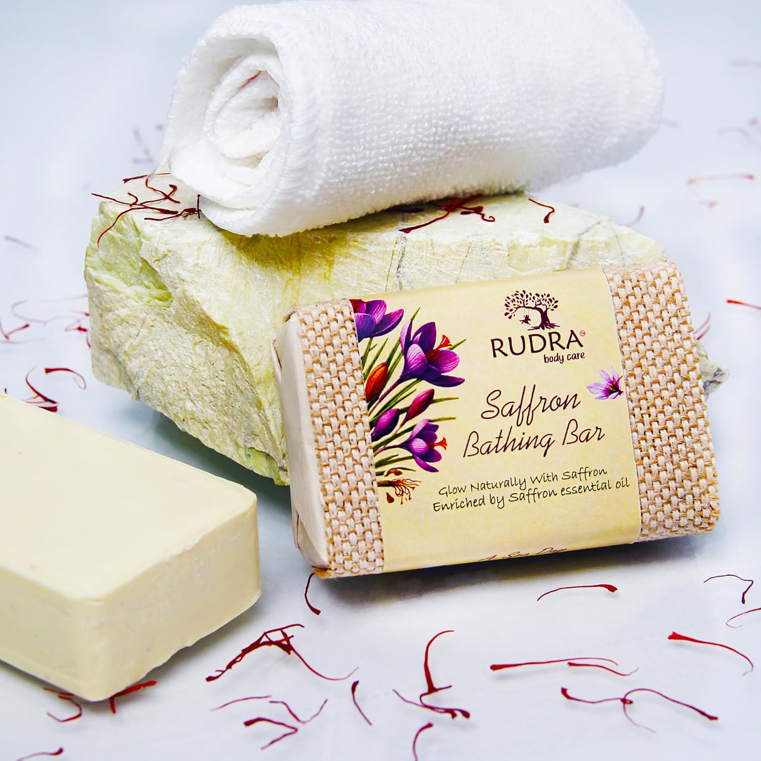 Soft Skin with Saffron- Handmade bathing bar made with saffron and coconut oil. It gently cleanses your skin while helping brighten dull areas and improve your natural glow. The formula keeps your skin soft and is great for everyday use on all skin types.