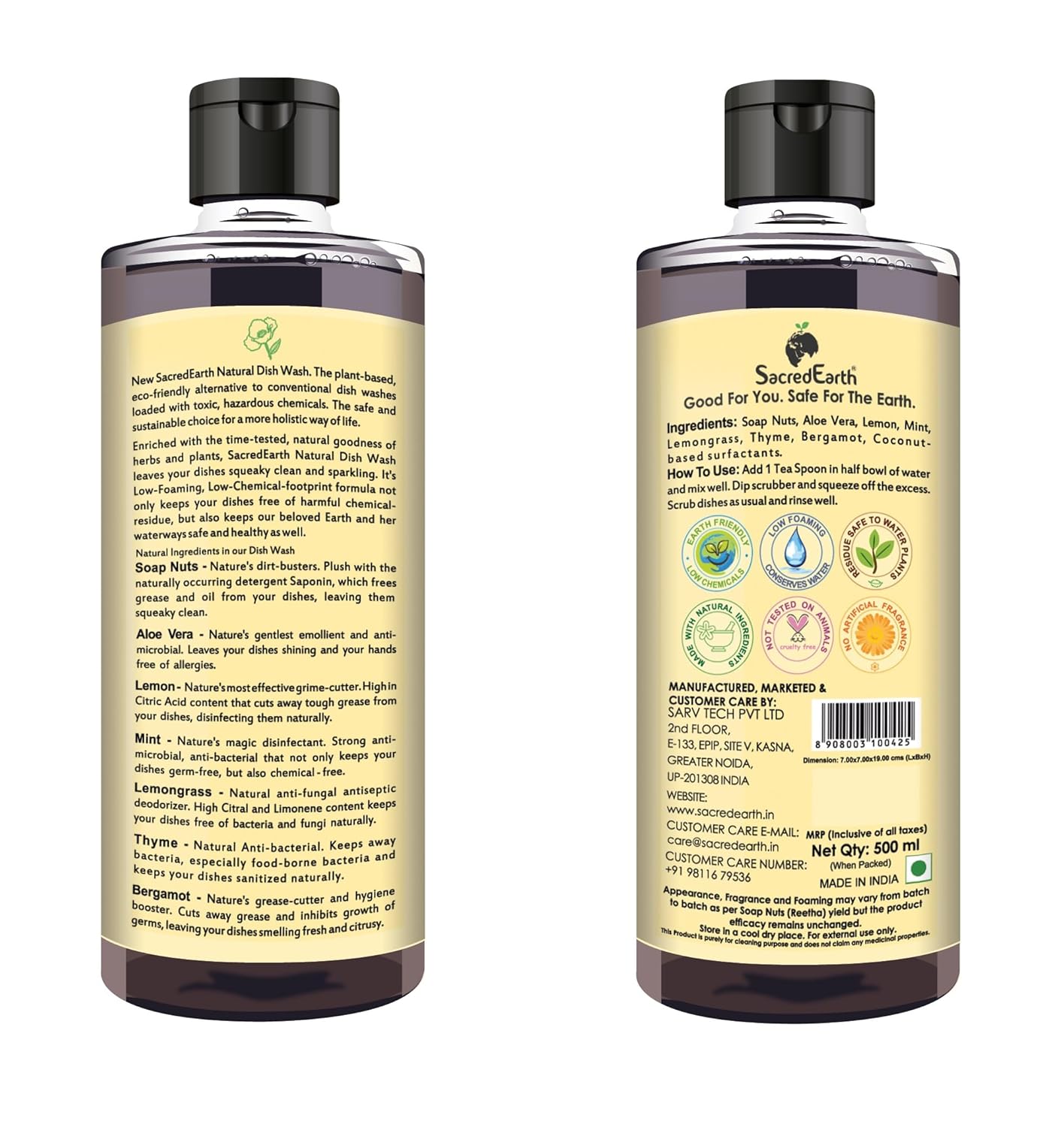Be the first to review “SacredEarth Natural Dish Wash Liquid with Soap Nuts, Lemon, Lemongrass, Thyme and Bergamot (500 ml)” Cancel reply