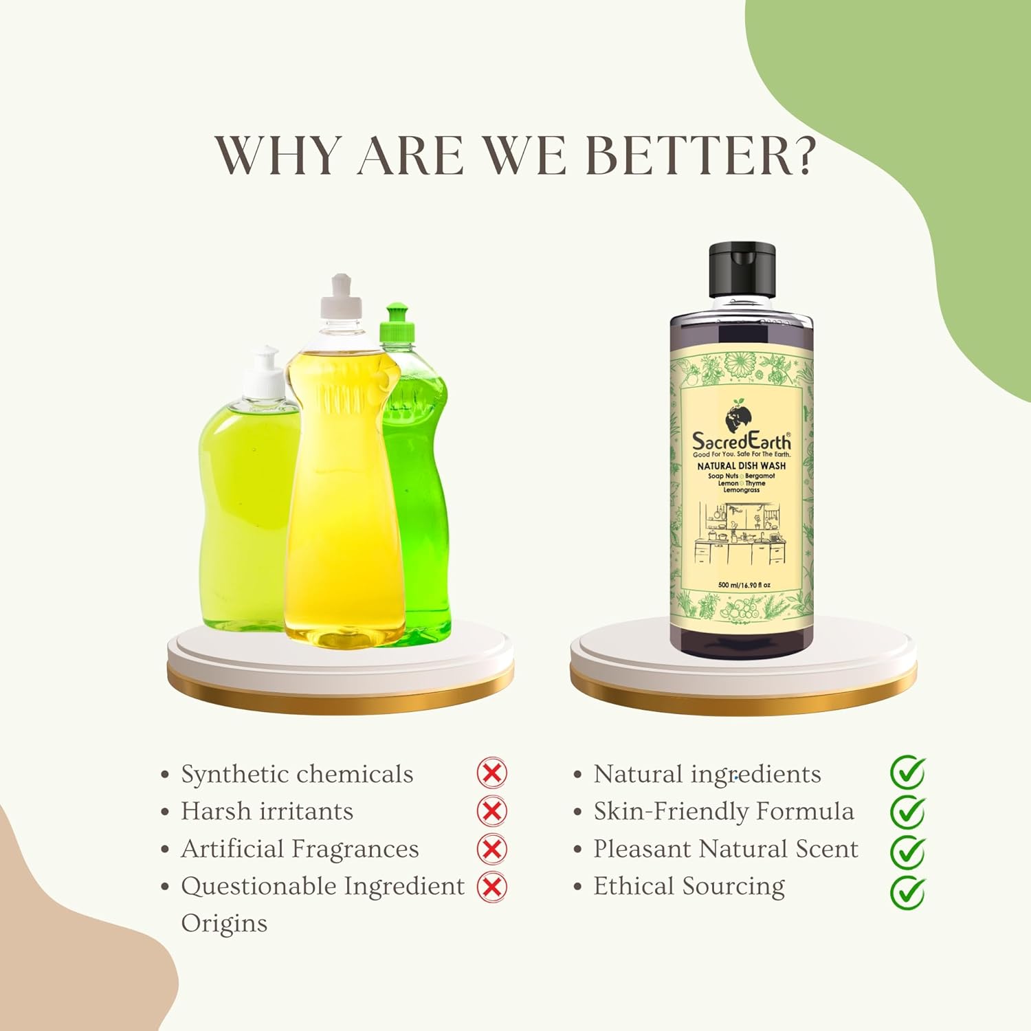 SacredEarth Dish cleaning gel is free from any artificial additives such as colors, fragrances, enzymes, bleaches, or other synthetic substances.