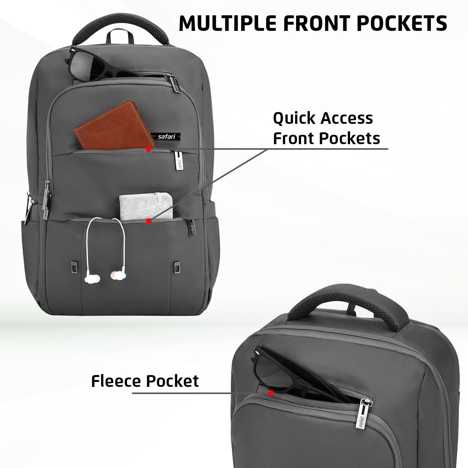 Safari Omega Pro 35L Laptop Backpack with Raincover, 3 compartments, bottle holder, organizer, school bag for boys and girls, college bag for women and men, office bag, travel bag