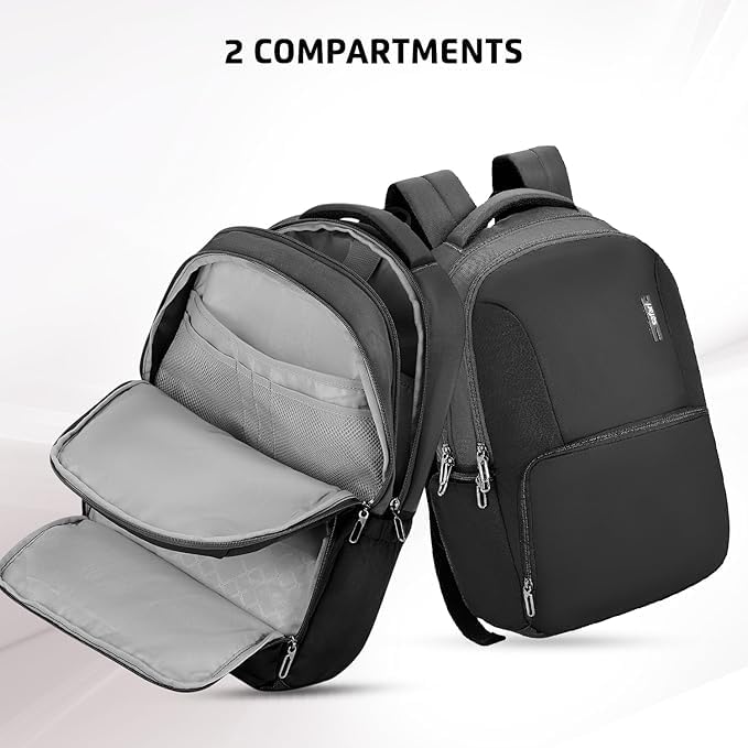 3 spacious compartments with a front pocket, Organizer (34L capacity) and 17″ laptop compatible