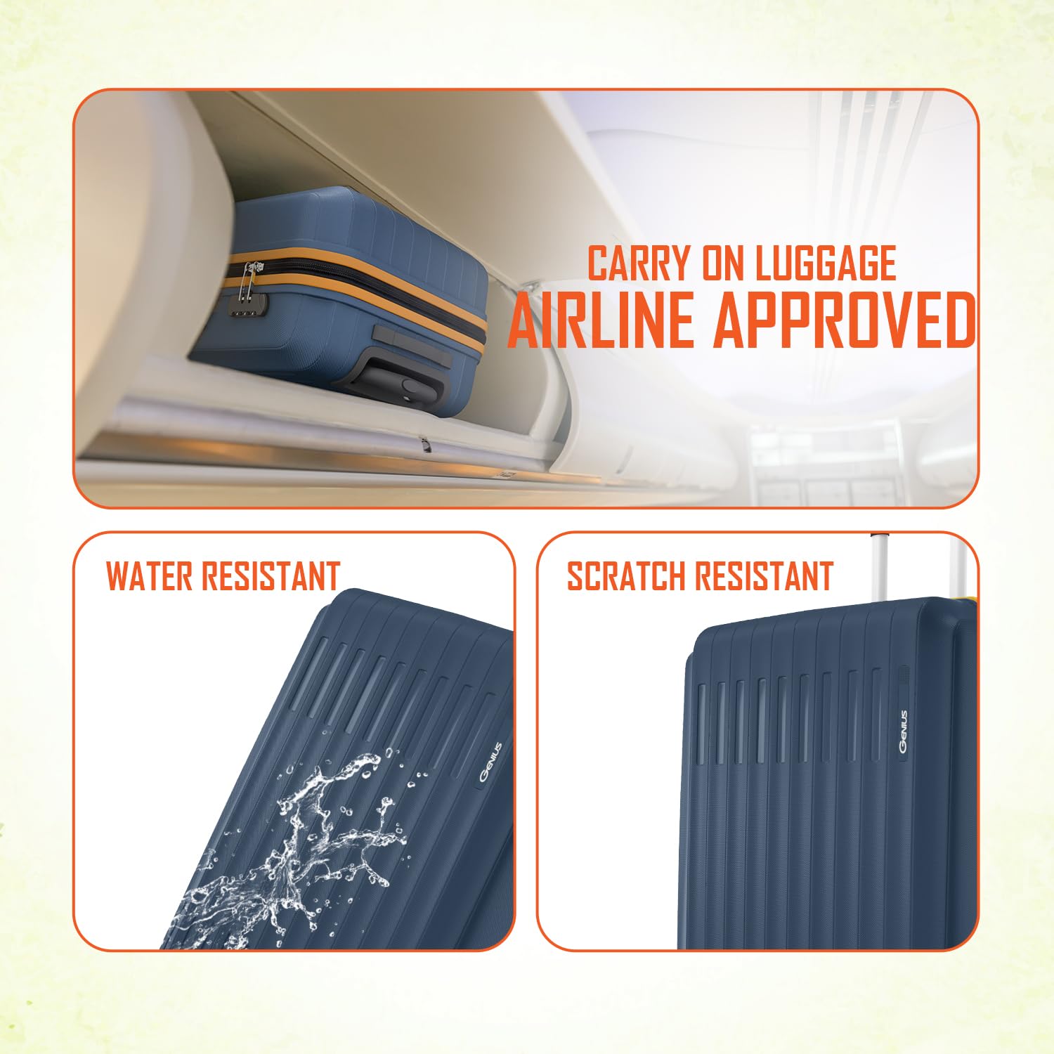 Effortless Maneuverability- Fitted with 4 smooth-rolling spinner wheels, this carry-on suitcase glides effortlessly in every direction. The 360-degree wheeling system ensures seamless movement across terminals, stations, and parking lots.