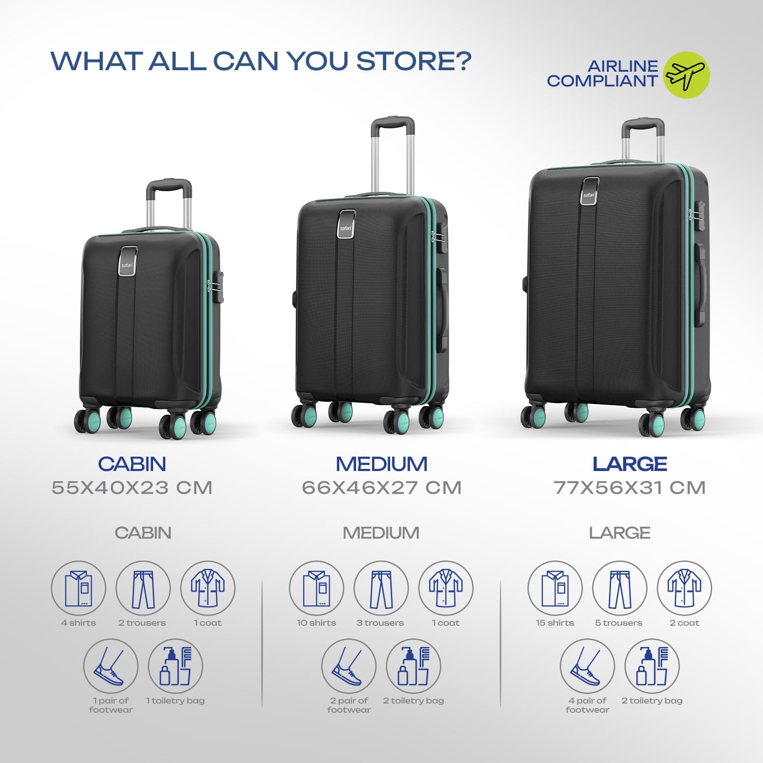 Safari Thorium Neo is for every traveler who is looking for smart looking luggage with good utility point. Because of its new age trendy colors and contrast beading, the bag suits every need be it business or leisure travel. The design on the bag gives it a very unique appearance. The polycarbonate shell protects your luggage from scratches and mishandling. The 5 year international Warranty ensures we have got you covered on all your trips.