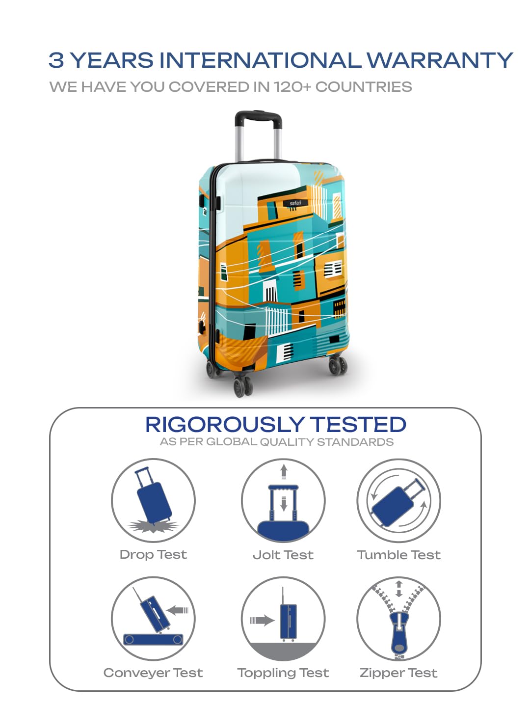 Inspired from the beautiful 5 towns having colourful houses and vineyards in Cinque Terre in Italy. Now add color to your next Vacation with Oasis, the new vibrant Printed PC from Safari. Oasis with its Polycarbonate shell ensures that along with style it also endures all the ups and downs during your trip. The Fixed Combination lock keeps your belongings secure and the Trolley and Wheels ensure you move around your Luggage smoothly. The 3 year International Replacement Warranty ensures that we have got you covered on all your trips.Inspired from Cinque Terre (5 lands)
