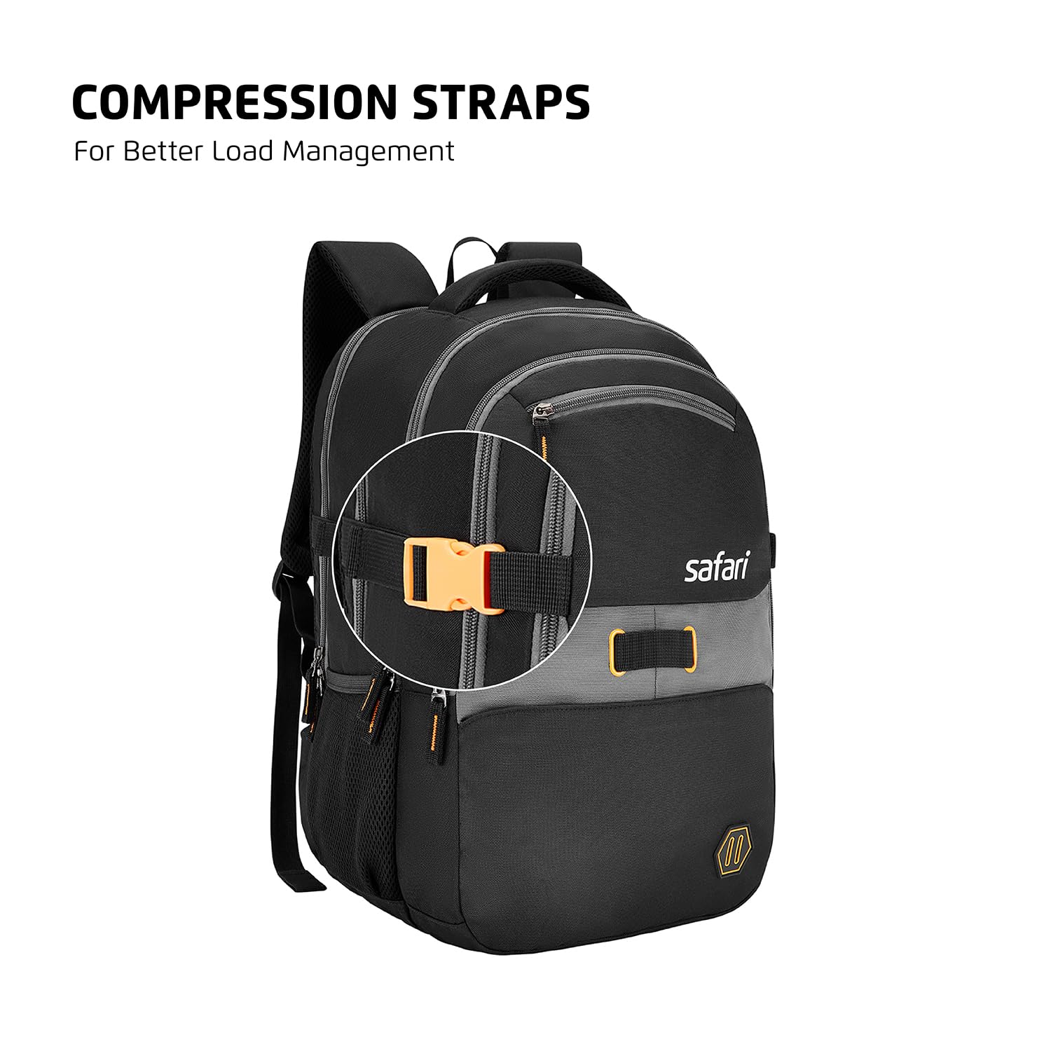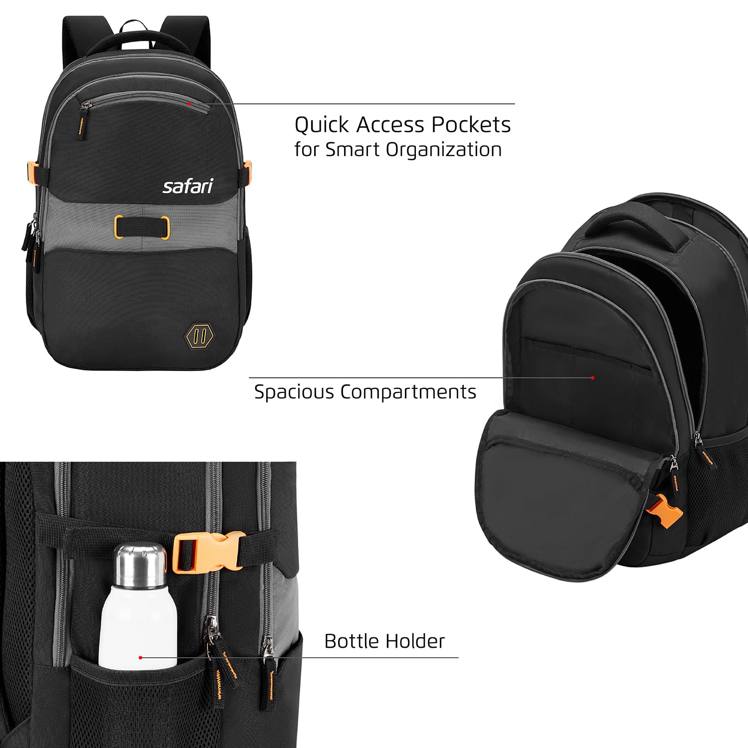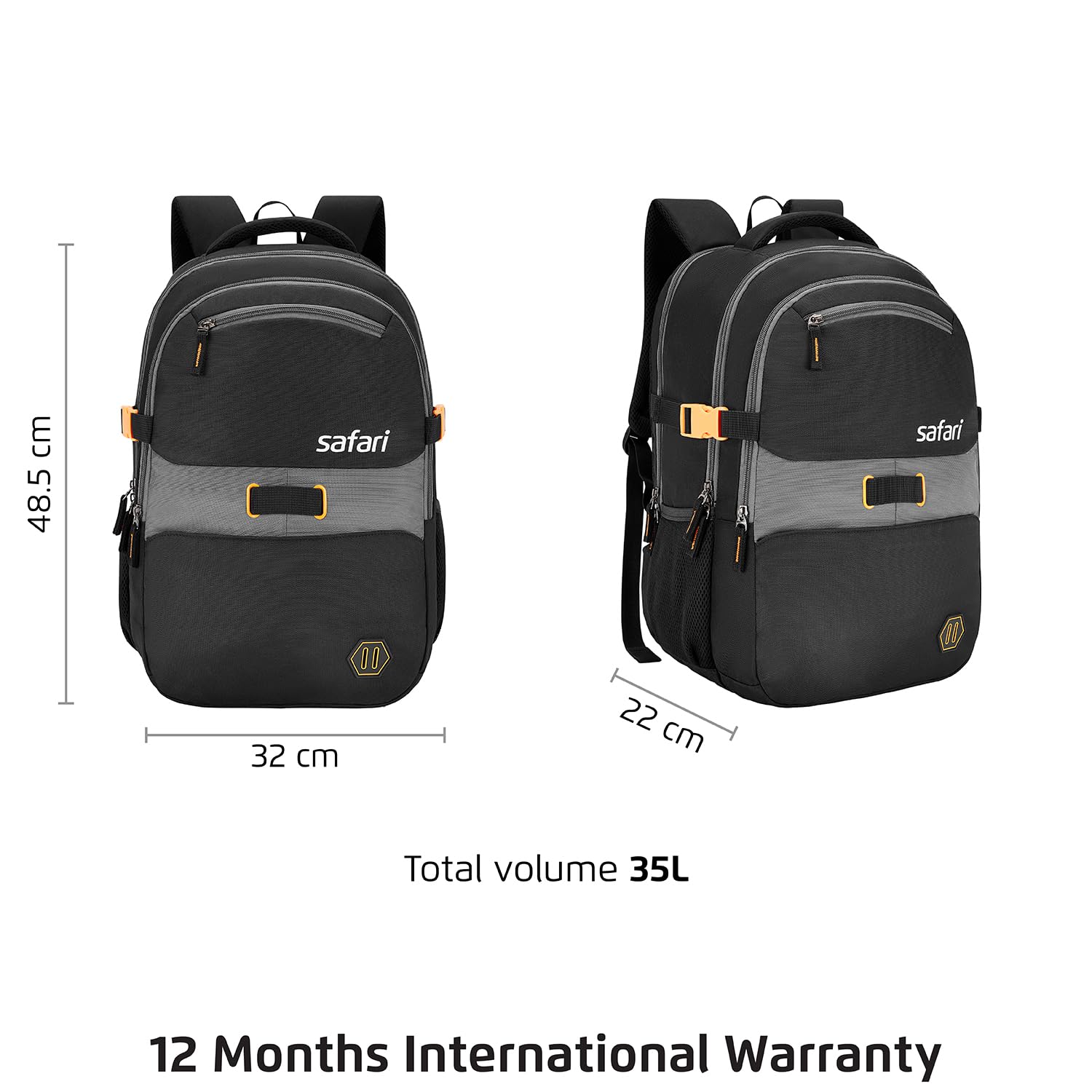 Safari Omega Pro 35L Laptop Backpack with Raincover, 3 compartments, bottle holder, organizer, school bag for boys and girls, college bag for women and men, office bag, travel bag