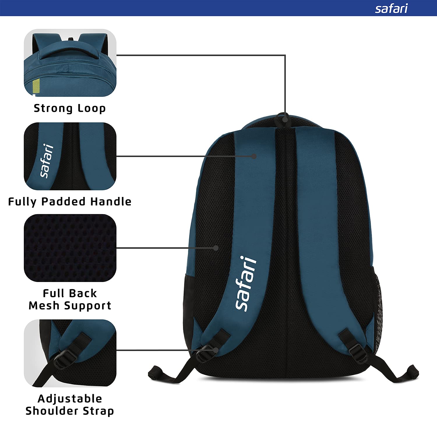Mesh Padding on back & shoulder strap to provide comfort & better back support; 1-year International Warranty against manufacturing defects