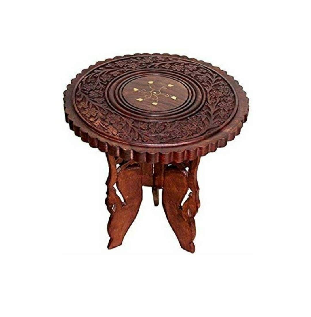 Saharanpur Handicraft 11.2 Inch Round Folding TableFordable Table With Fine Carving & Brass Inlay Work. Fully Handcrafted Table Can Be Used For Keeping Flower Vases Or Other Decor Pieces. Also One Can Fold The Table When Not In Use. Fashion Era Fordable Table Is Made From High Quality Sheesham Wood With High Finishing.