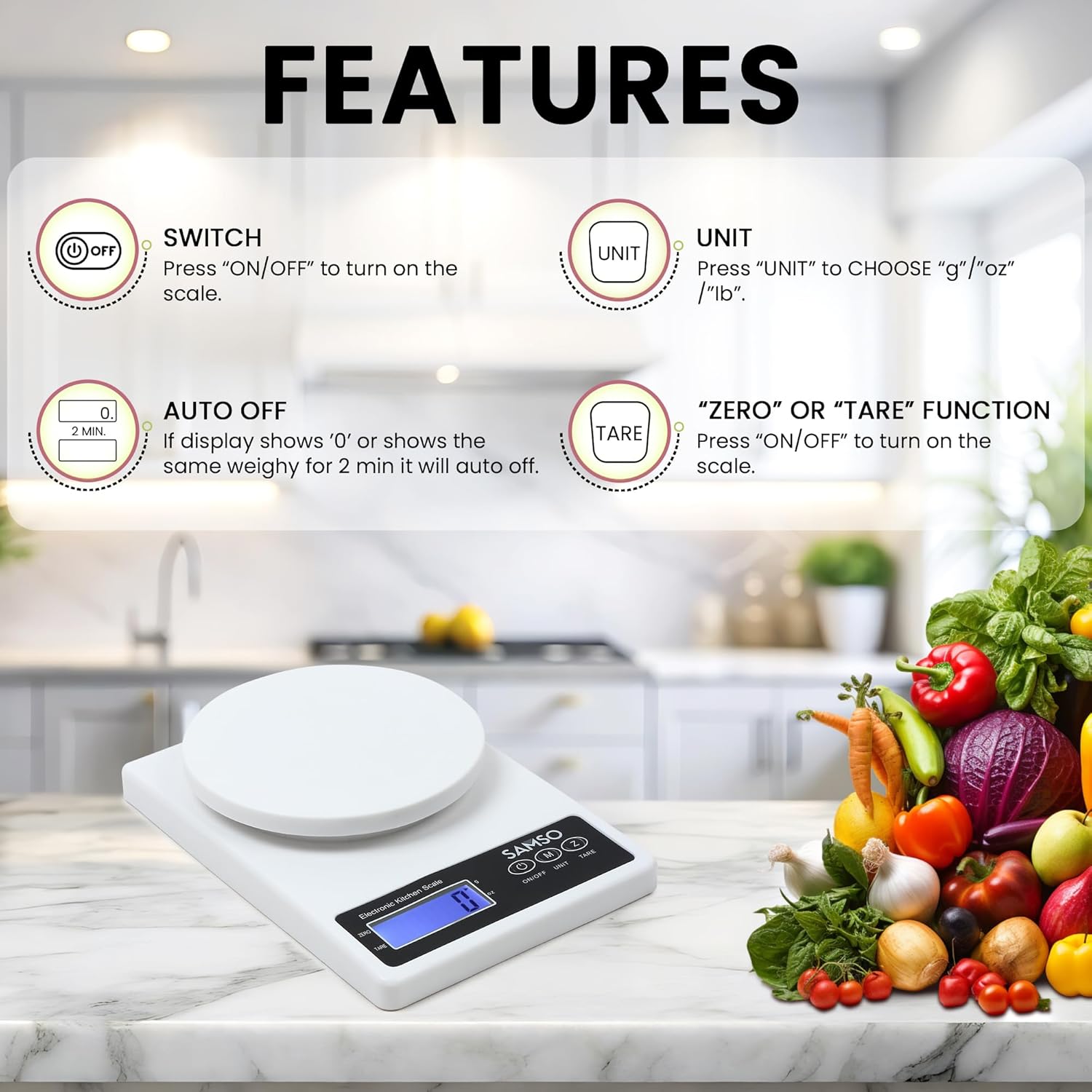 ✅[Free Bowl Included]: For added convenience, the SAMSO Digital Kitchen Scale comes with a complimentary bowl. This bowl is perfect for mixing ingredients or holding items while weighing, ensuring you have everything you need right out of the box.