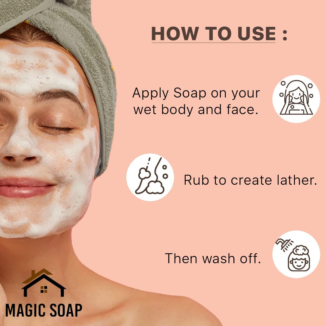 Natural Glow: Use our paraben-free Sandalwood & Saffron Magic Soaps for Bath / Bath Soap to reveal glowing skin. Your skin will have a natural, healthy glow because to the powerful blend of saffron and sandalwood, which brightens your complexion. As these components combine to improve the beauty and vitality of your skin, discover the transforming power of nature.