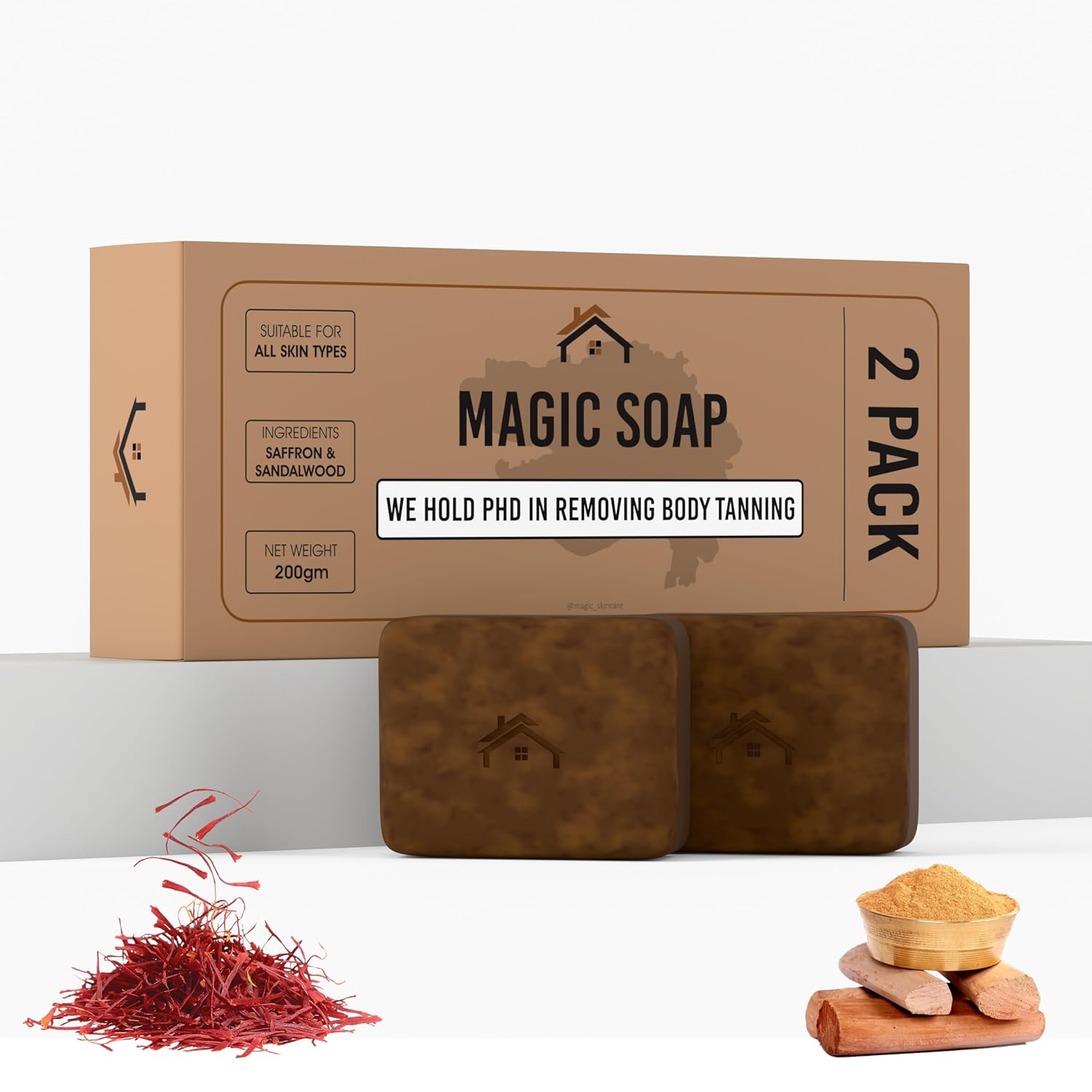 All types of Skin: Our flawlessly crafted Sandalwood & Saffron Magic Soap/Bath Soap is a multipurpose remedy for all skin types. Regardless of your skin type—dry, oily, or sensitive—this soap is made to offer a well-rounded and nourishing experience. An inclusive addition to your daily beauty routine, this luxury handmade soap/tan removal soap has renewing properties that both men and women can enjoy.