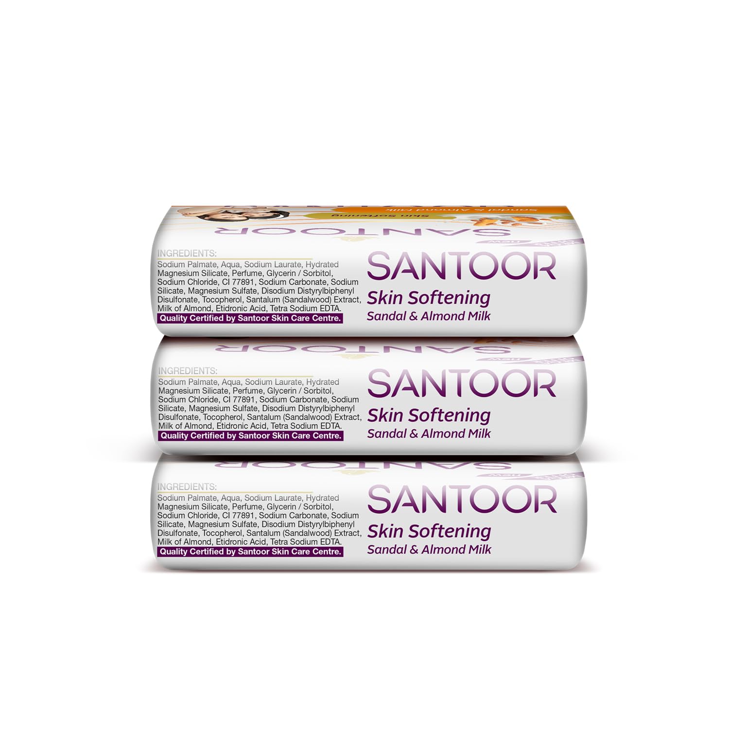 With Santoor Skin Softening Sandal & Almond Milk Bathing Soap, indulge in the goodness of natural ingredients that have been cherished in Indian beauty rituals for centuries. Sandalwood, known for its aromatic fragrance and therapeutic properties, gently cleanses your skin, leaving it refreshed and rejuvenated. Its anti-inflammatory and cooling effects help soothe irritated skin, making it ideal for all skin types. Almond milk, on the other hand, is a natural elixir that is rich in nutrients and antioxidants that nourish and rejuvenate the skin. Its moisturizing properties deeply hydrate the skin, restoring its natural moisture balance. With its gentle and nurturing qualities, almond milk helps maintain the skin’s health and vitality, leaving a radiant complexion. This luxurious bathing soap goes beyond cleansing. It deeply nourishes and moisturizes your skin, leaving it soft, smooth, and supple. Santoor Sandal & Almond Milk Beauty Bar Soap is the result of Santoor’s commitment to quality and excellence. With over 36 years of expertise in skincare, Santoor has become a trusted brand, beloved by millions of women across the country. Each bar of soap is meticulously crafted, ensuring that you receive the highest level of efficacy and satisfaction.