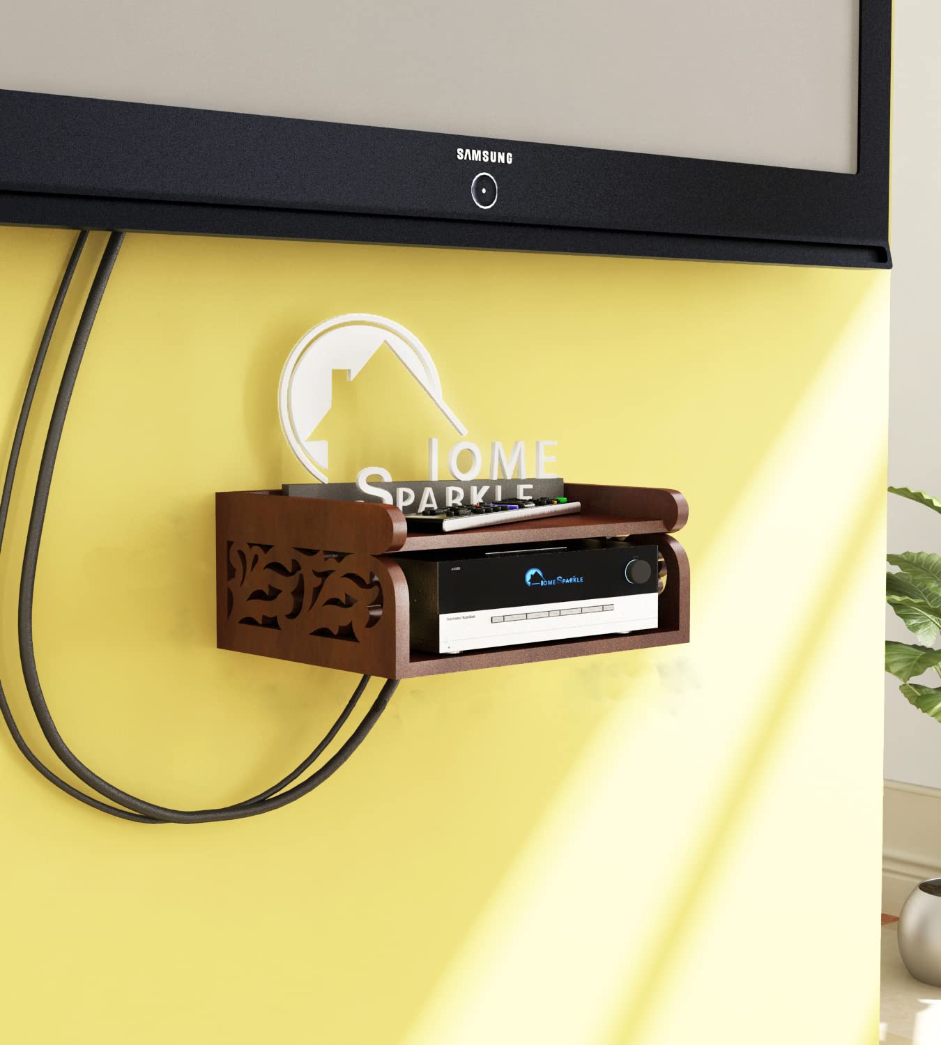 “Organize your entertainment area with this sleek setup box wall mount shelf, crafted from durable Prelam MDF in an elegant dark brown finish. Designed to hold set-top boxes, Wi-Fi routers, remotes, and decorative items, it adds both style and functionality to your wall space.”