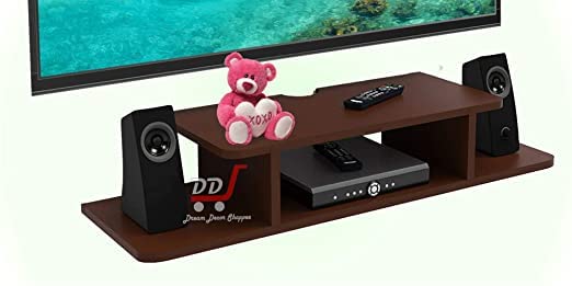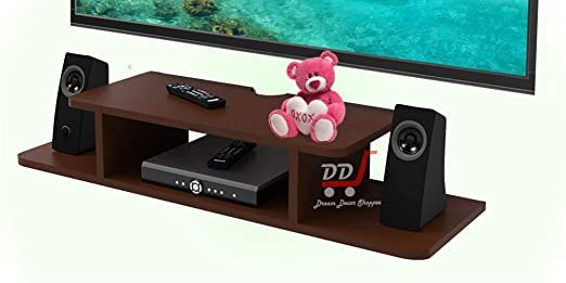 Wooden Shelf Multi utility TV unit, with dedicated space your remote and set top box and provision for keeping other items like magazines, photo frames and decorative objects. It is easy to mount on the wall, and can be removed and shifted with ease. Wooden Stand Perfect For all TV Size.