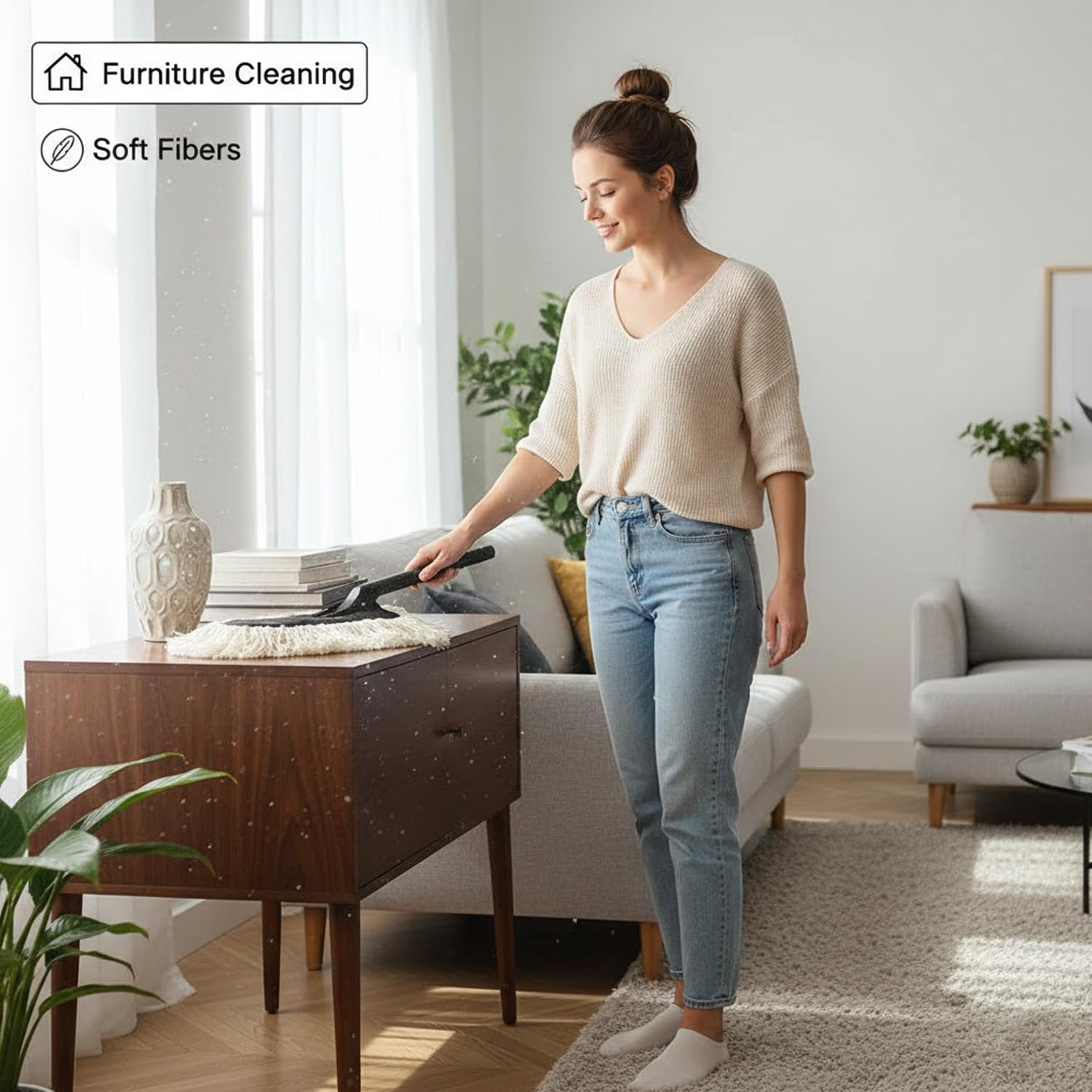 FAST INTERIOR DUST REMOVAL: Tackle daily debris in seconds with this soft car cleaner brush that glides over dashboards, vents, and panels, trapping particles without scratching, while the slim car cleaning brush exterior design reaches tight gaps plus a handy car duster brush handle.