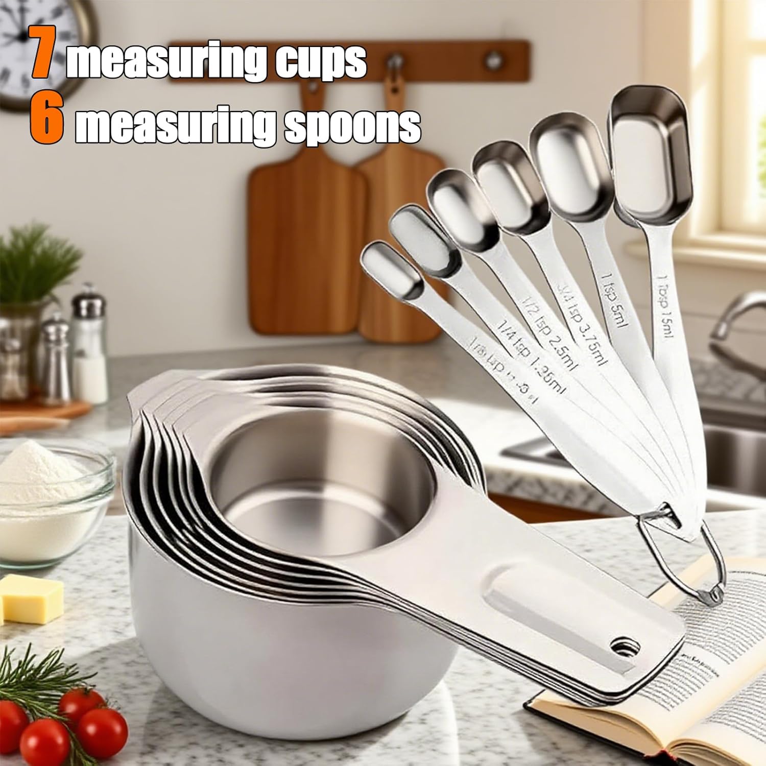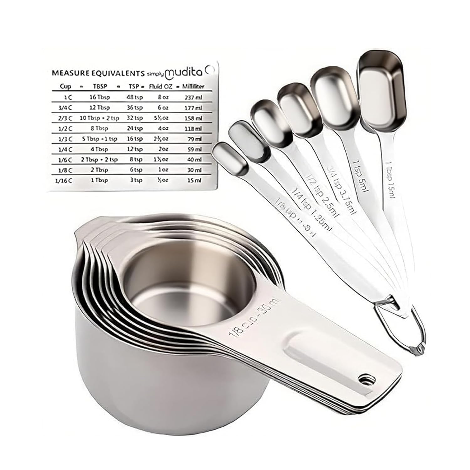 Look no further, nesting set of 13 Stainless Steel Measuring Cups and Spoons plus bonus magnetic measure conversion chart will last a lifetime.