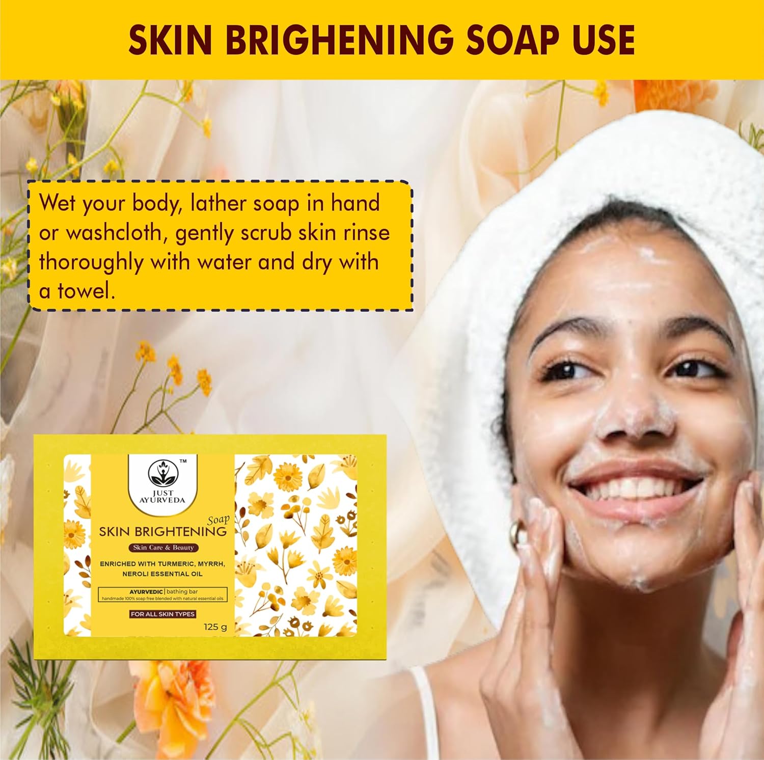AYURVEDIC FORMULATION: Handmade bathing bar enriched with powerful natural ingredients like turmeric, myrrh, and neroli essential oil for skin brightening