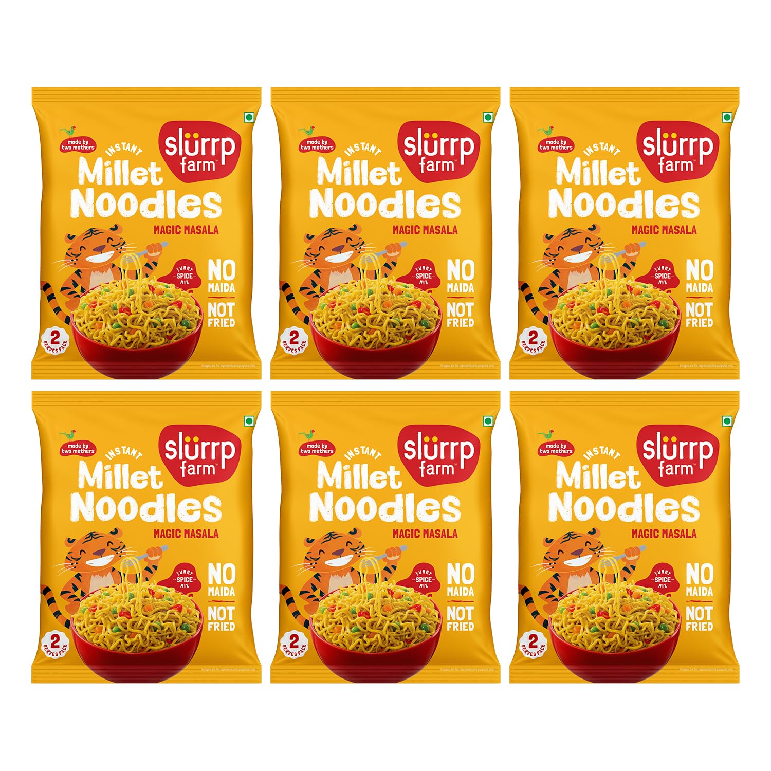 Sun-dried, not fried instant noodles that are made with a blend of Jowar and Wheat. Contain no maida, no preservatives, no trans fats, no artificial colours or flavours. Travel friendly size, easy and quick to make. Delicious tastemaker made with 100% Indian spices and dried veggies. How to make: Cook noodles in boiling water for 8 minutes then add the spice mix along with dried veggies. Cook it for a minute and serve hot