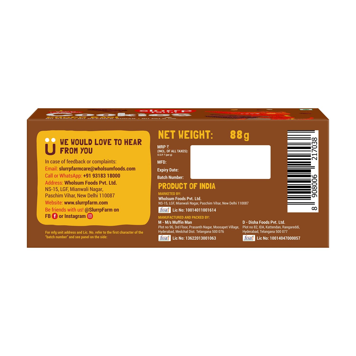 Contains No Maida, No Refined Sugar, No Palm Oil, No Artificial Colours, No Preservatives