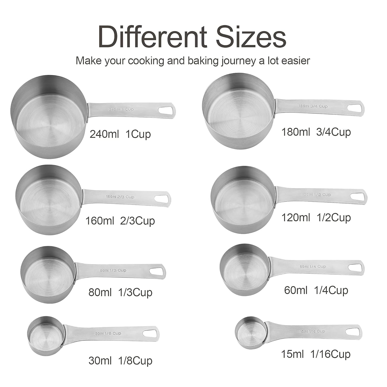 Measuring Cups Size:1 CUP – 240ML ,3/4 CUP – 180ML ,2/3CUP –