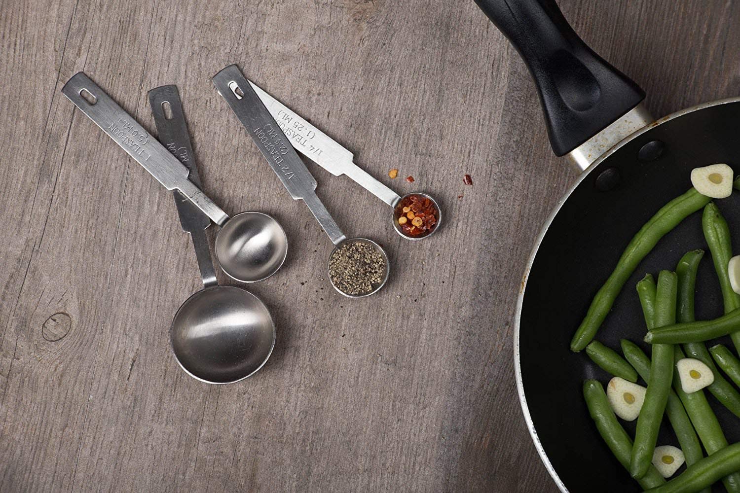 Food grade / FDA approved: measuring cups and spoons set are made of stainless steel which is durable, and have long life. It’s also BPA less / food grade material, perfect for your home and kitchen. Use them while baking cakes, breads