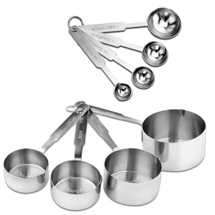 Parage Stainless Steel Measuring Cups & Spoon Combo for Dry or Liquid/Kitchen Gadgets/Cooking & Baking/Stackable Professional Measuring Cup Set with Measurement Handles (Set of 4 Cups & 4 Spoons)