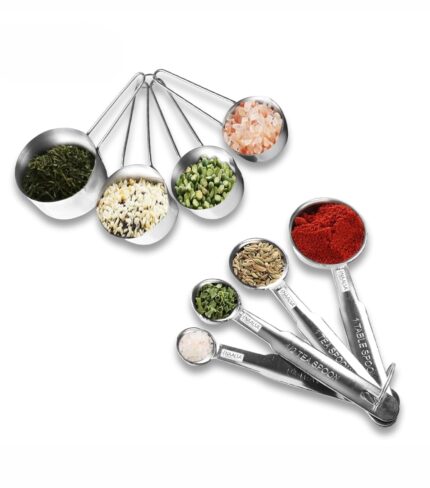 RABBONIX Stainless Steel Measuring Cups & Spoon Combo for Dry or Liquid/Kitchen Gadgets for Cooking & Baking Cakes/Measuring Cup Set Combo with Handles (Set of 4 Cups and 4 Spoons)