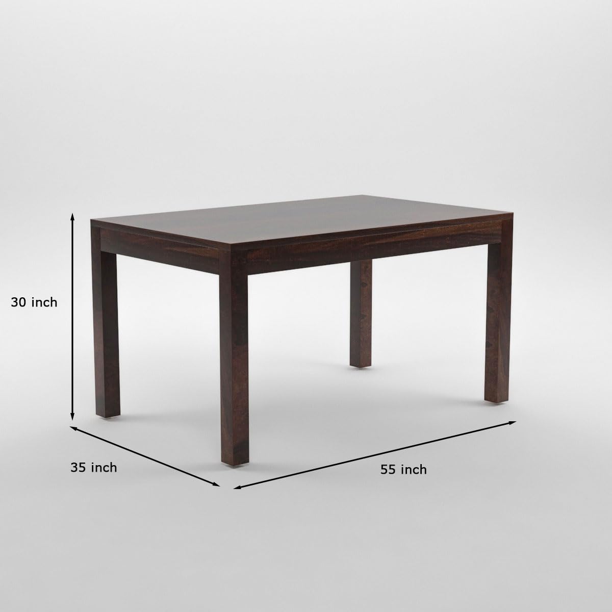 Product Dimensions(In Inch): Table: Length 55 X Width 35 X Height 30 | Chair: Length 17 X Width 17 X Height 39, Seating Height:- 18 | Bench: Length 44 X Width 16 X Height 18