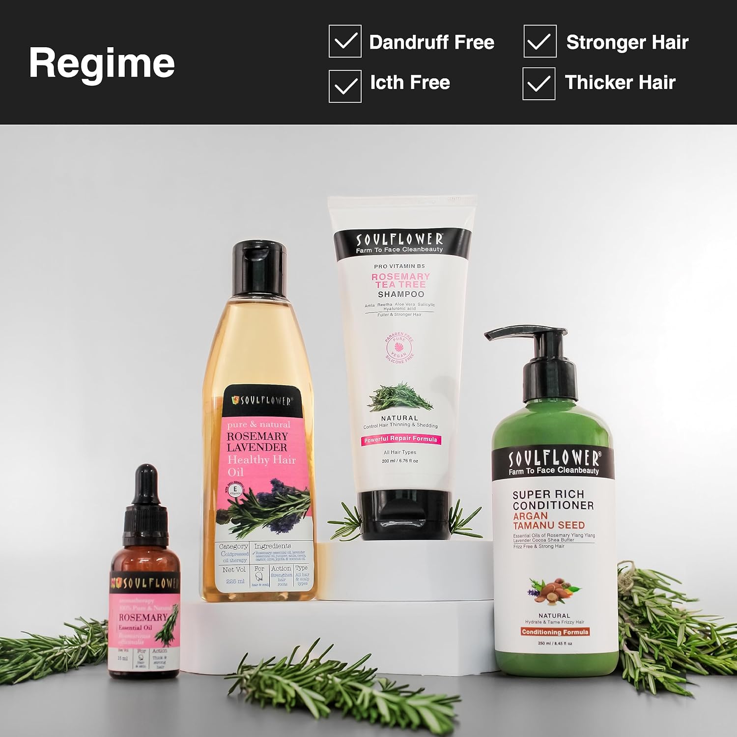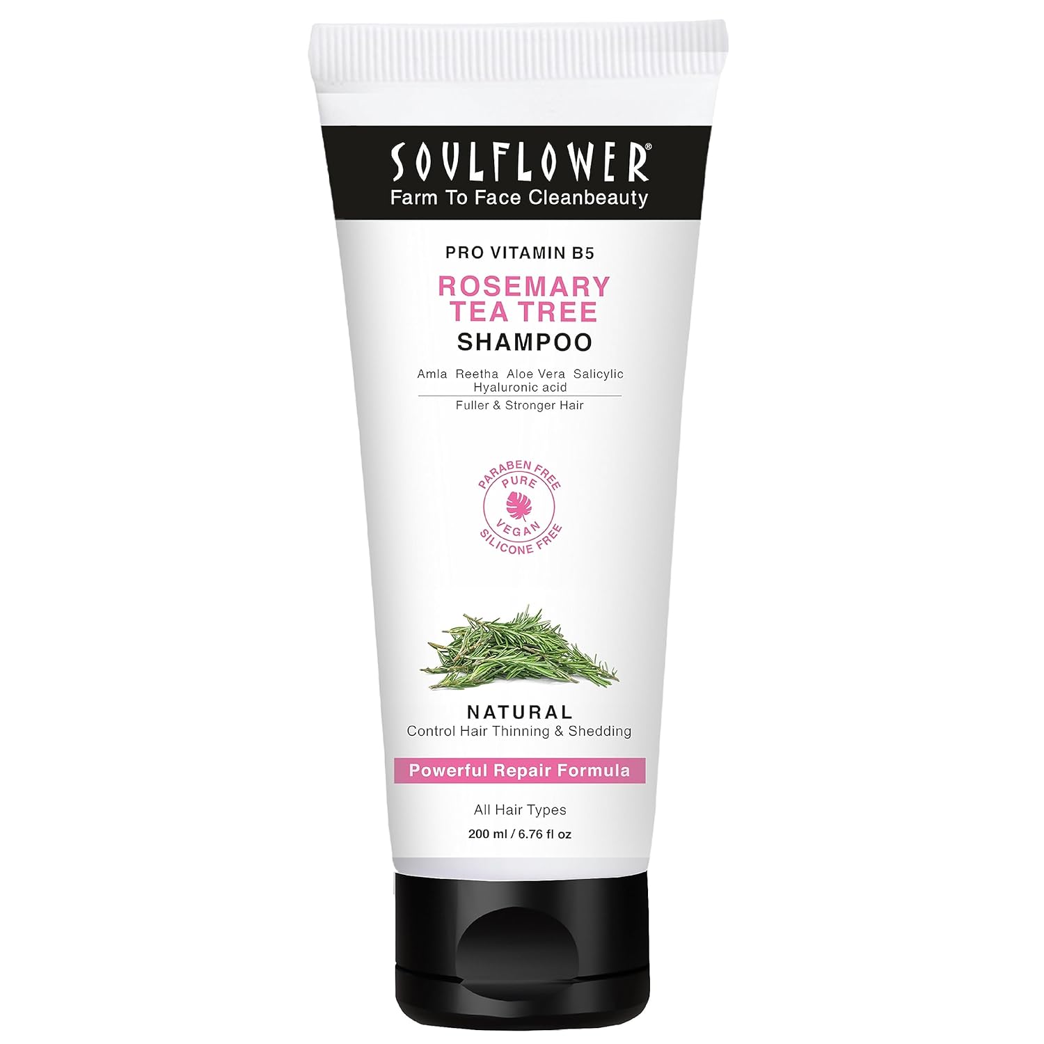 “22 Saal ka Bharosa” for HAIR GROWTH and VISIBLY THICKER HAIR: Soulflower Rosemary Tea Tree Shampoo has 360-degree hair benefits. Encourages faster hair growth, controls hair fall, reduces hair damage, receding hairline, and hair thinning