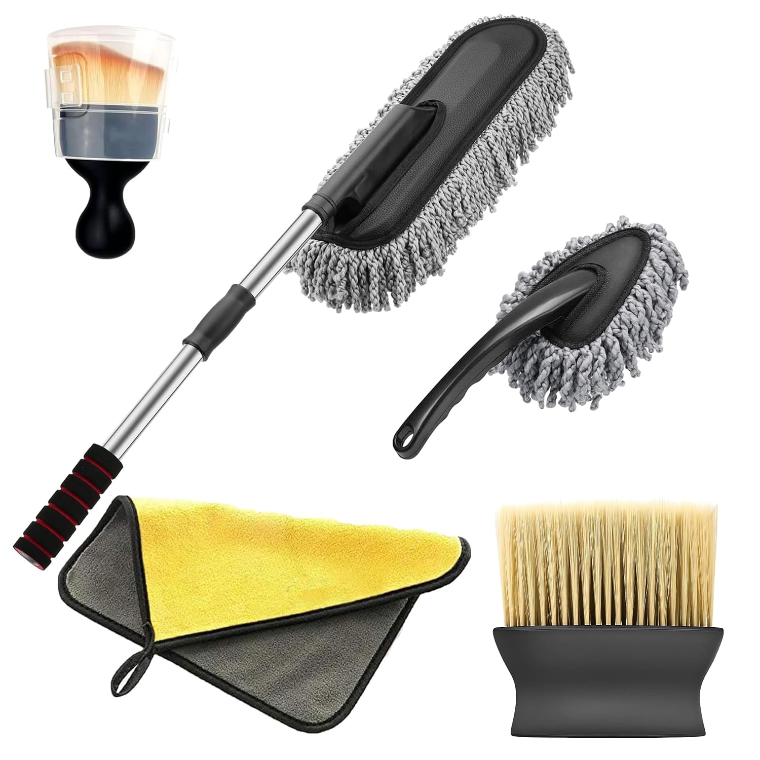 【User-Friendly Tools】: Keep your vehicle in prime condition with a complete car care kit that includes a versatile duster and a dependable car cleaner brush. Additionally, elevate its look with stylish exterior accessories, ensuring both cleanliness and enhanced appearance for your ride.