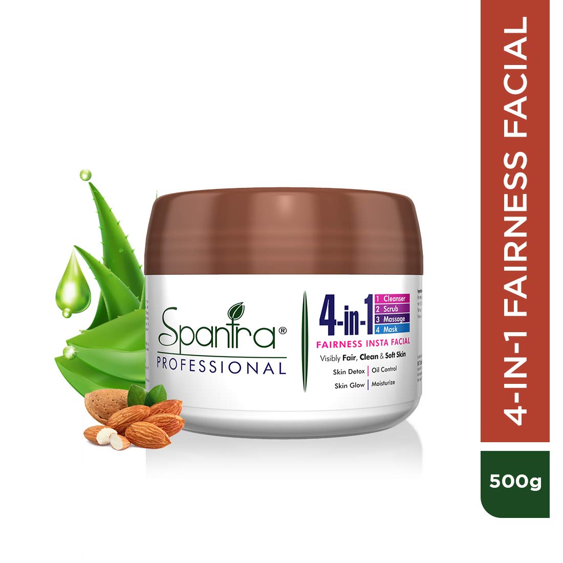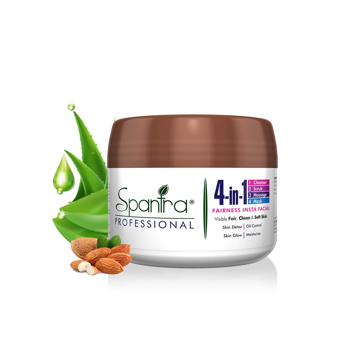 Improves skin tone and uneven pigmentation. Spantra 4-in-1 Insta Facial Fairness that removes excess sebum, dirt and impurities contains skin brightening scrub that shows smooth and clear skin.